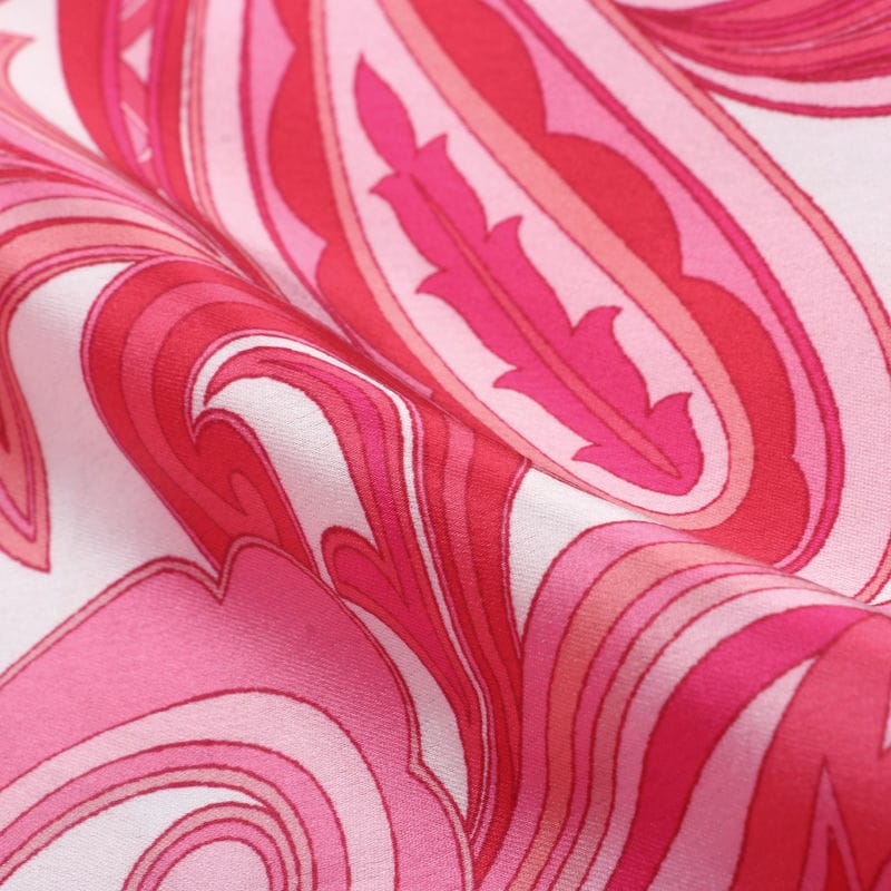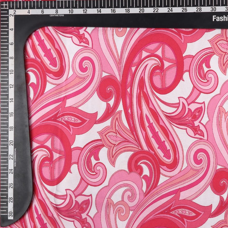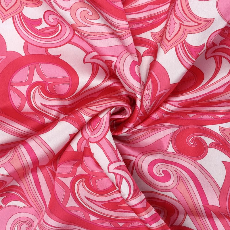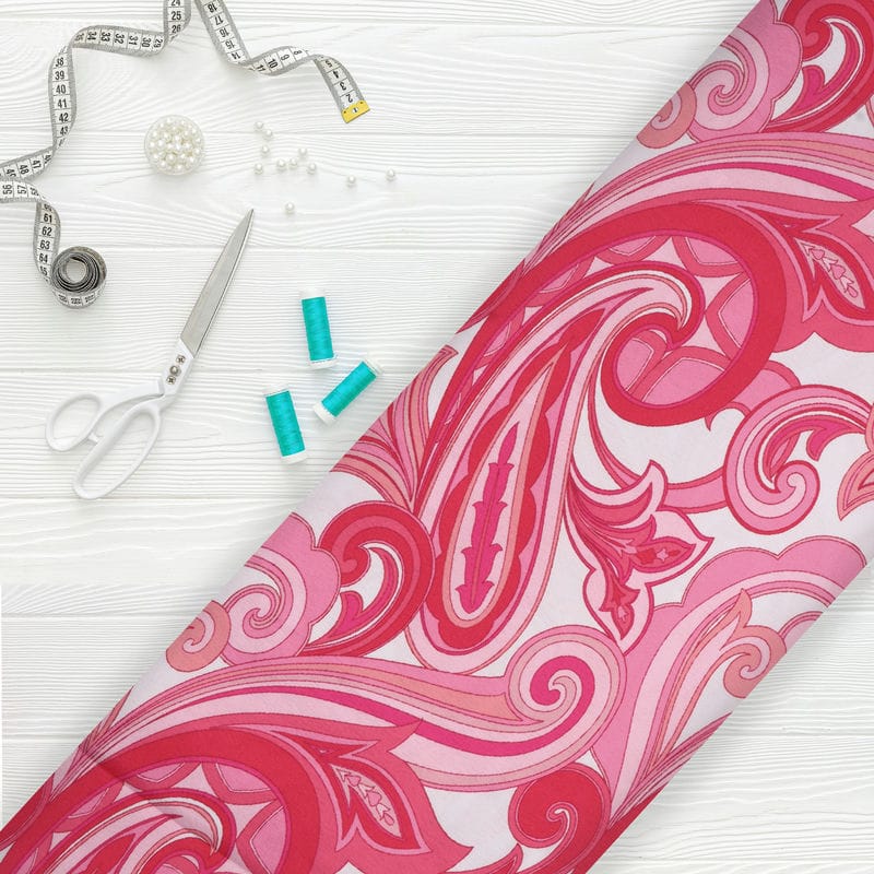 Pink And White Paisley Pattern Screen Print Japan Satin Fabric