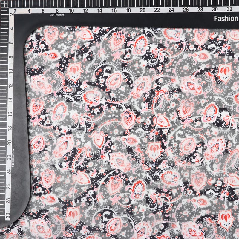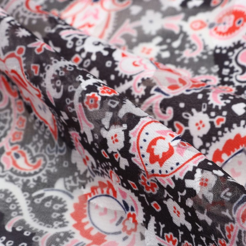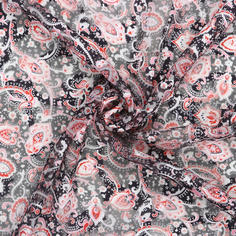 Red And Black Paisley Pattern Digital Print Georgette Jacqaurd Fabric