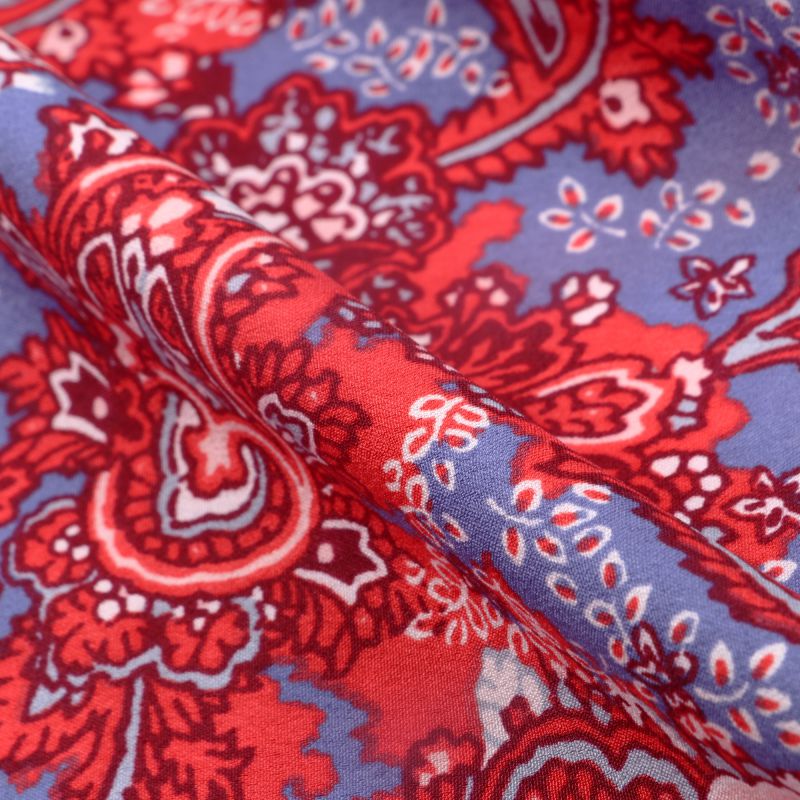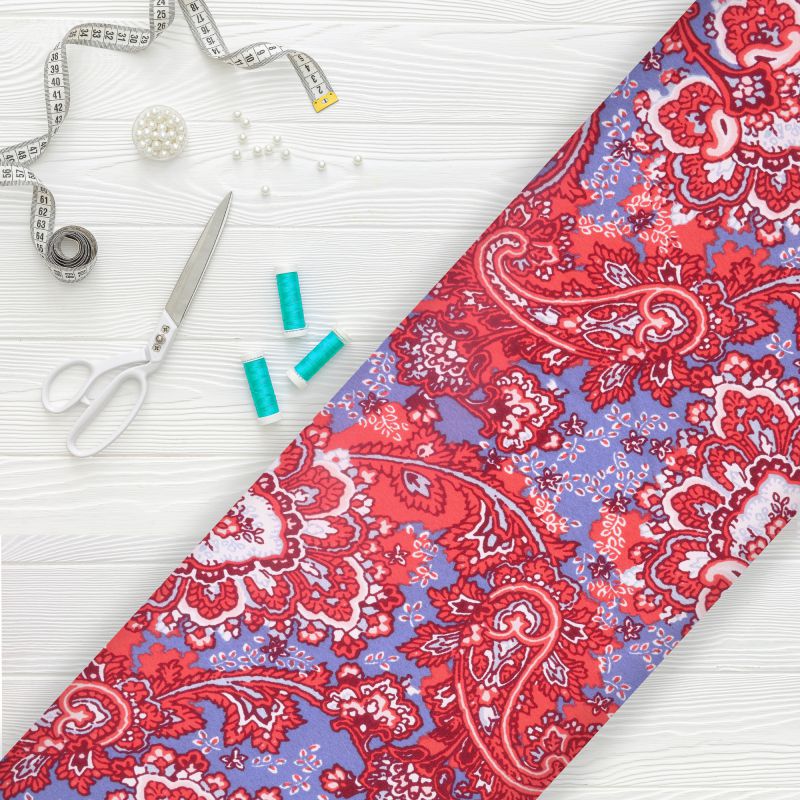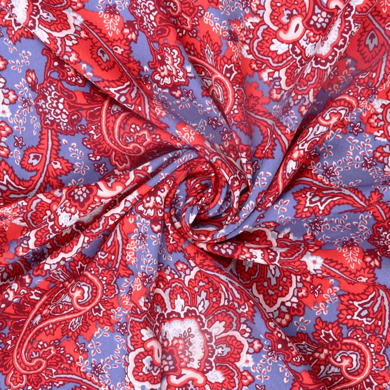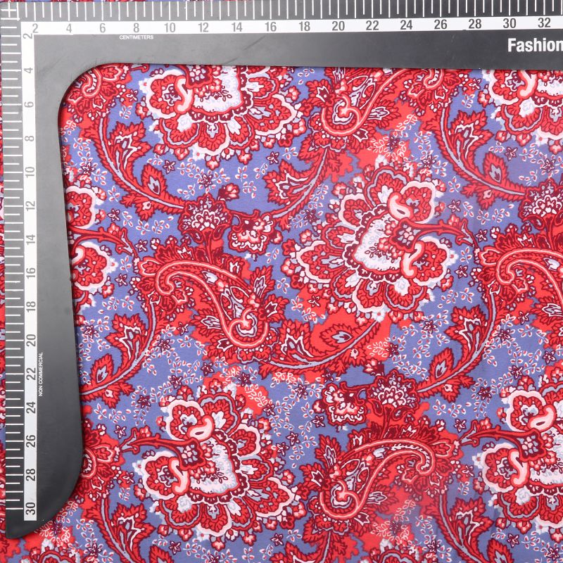 Red And Blue Paisley Pattern Screen Print American Crepe Fabric