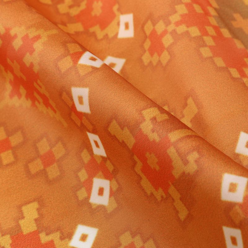 Orange And White Patola Pattern Digital Print Liquid Organza Fabric