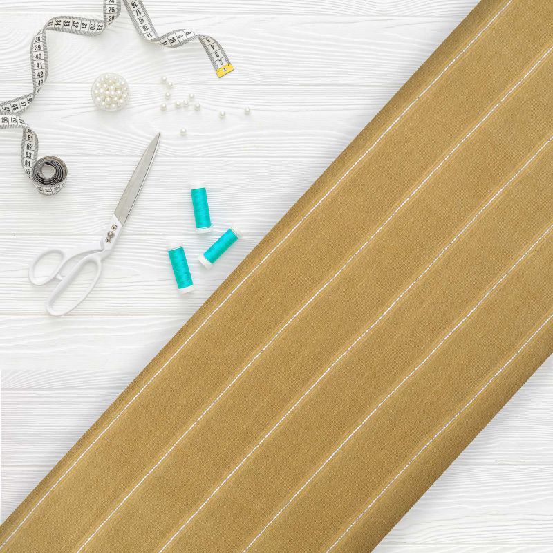 Grayish Yellow Plain Dyed Chanderi Dobby Silver Jari Fabric