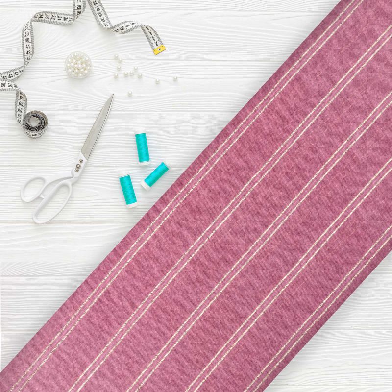 Rouge Pink Plain Dyed Dobby Gold Lurex Chanderi Fabric