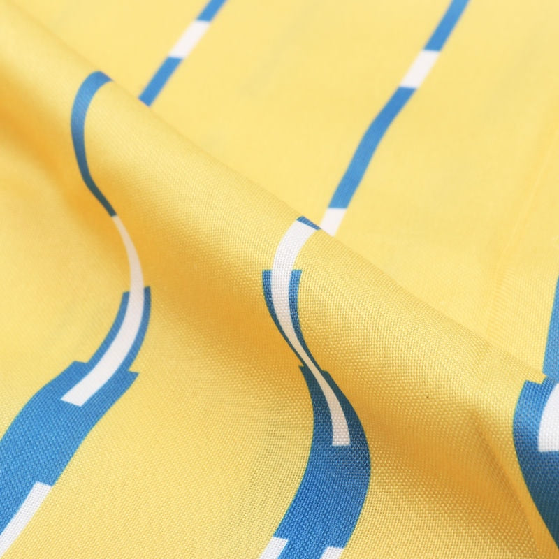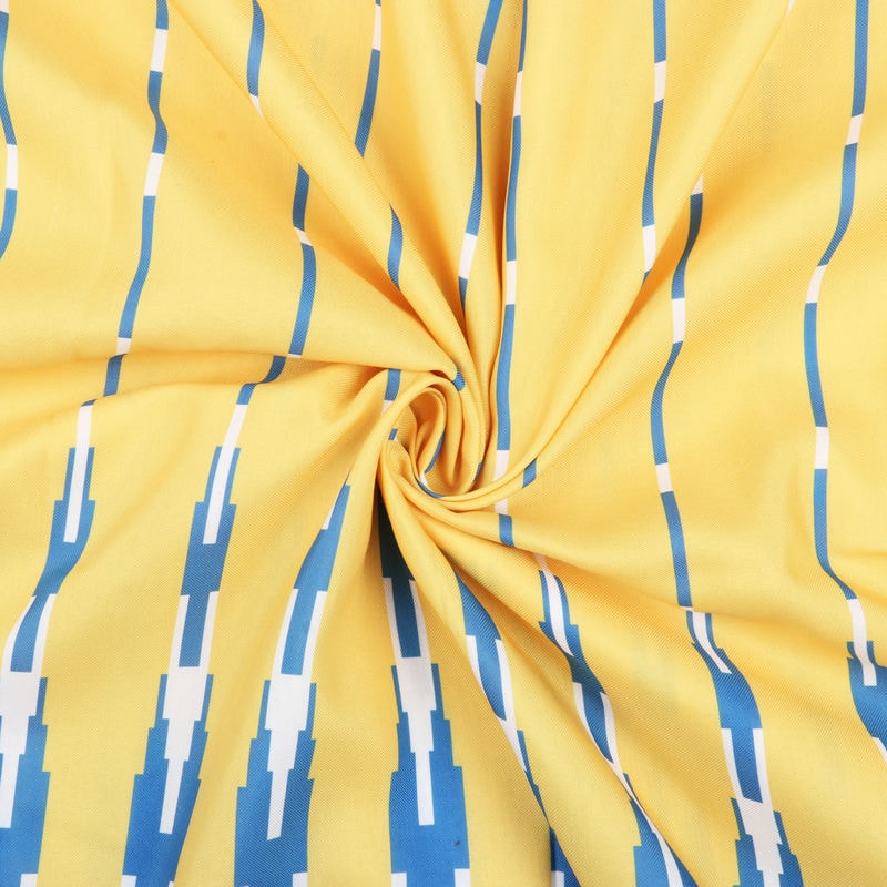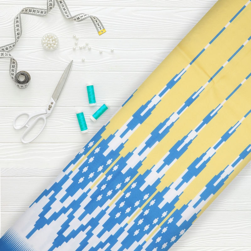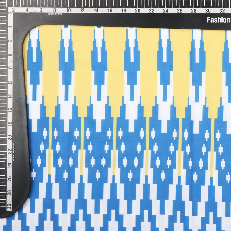 Yellow And Blue Ethnic Pattern Digital Print Rayon Fabric