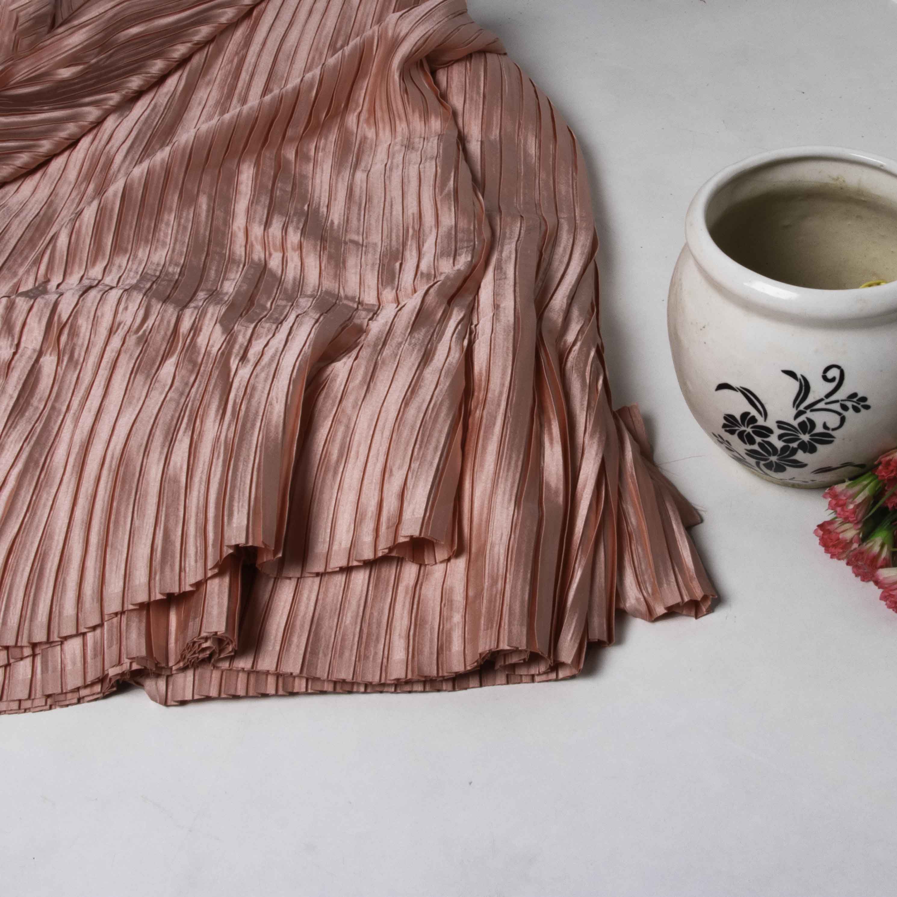 Peachy Pink Plain Japan Satin Pleated Fabric