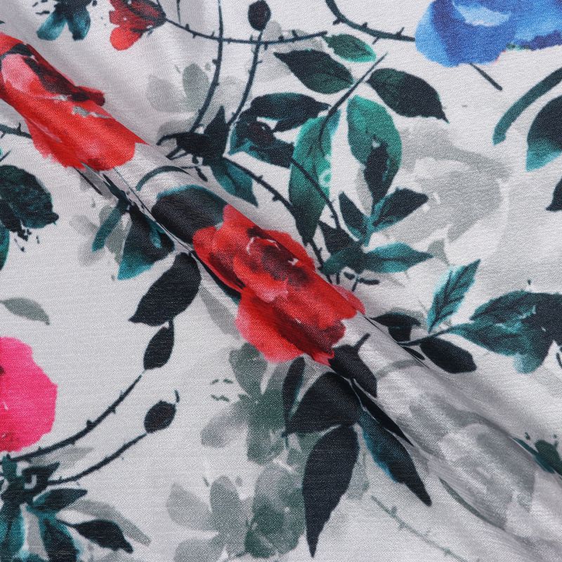 Grey And Red Floral Pattern Digital Print Chinon Chiffon Fabric