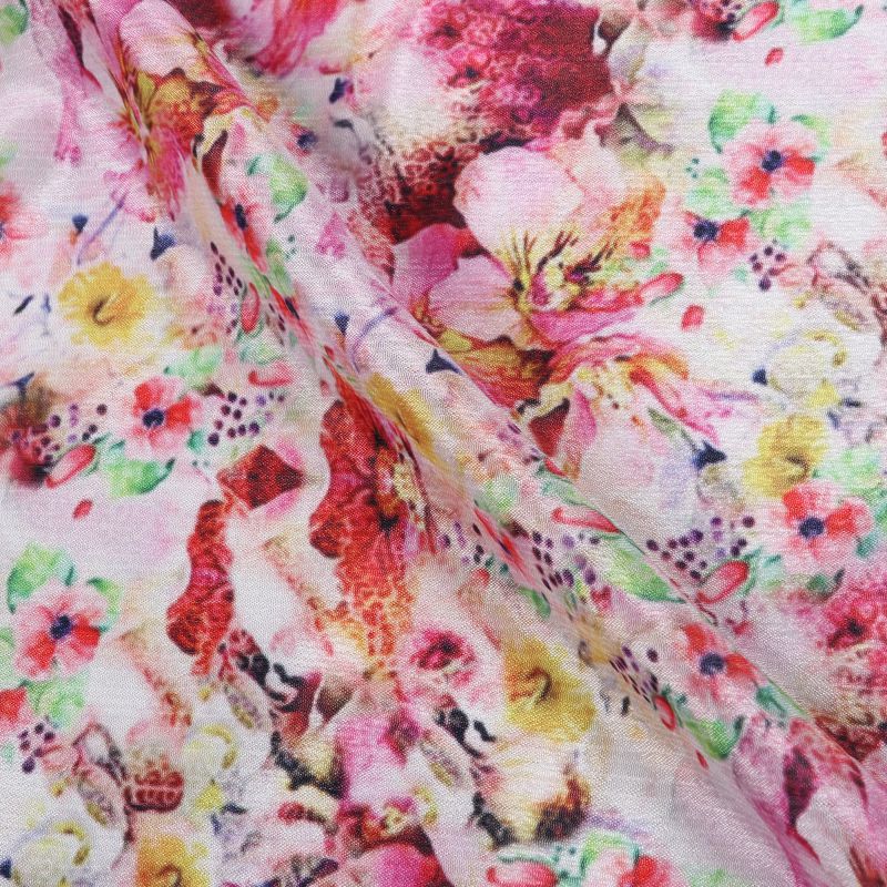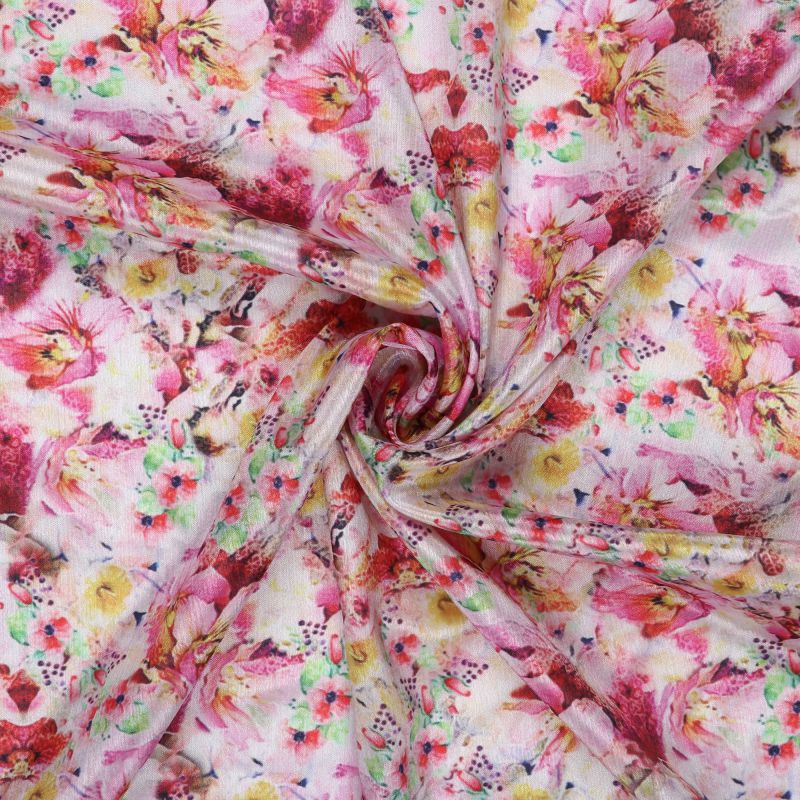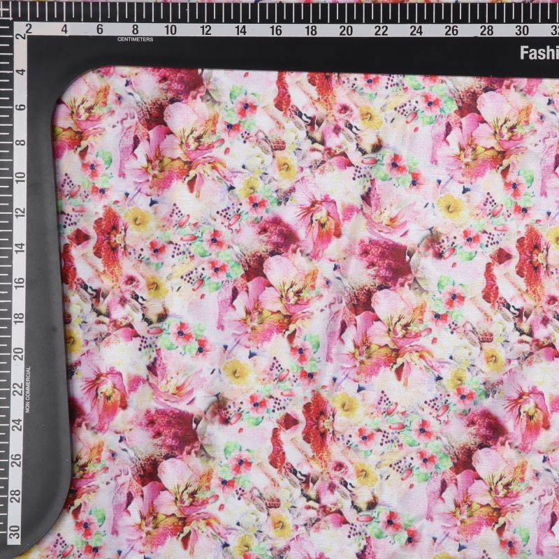Pink And Yellow Floral Pattern Digital Print Chinon Chiffon Fabric