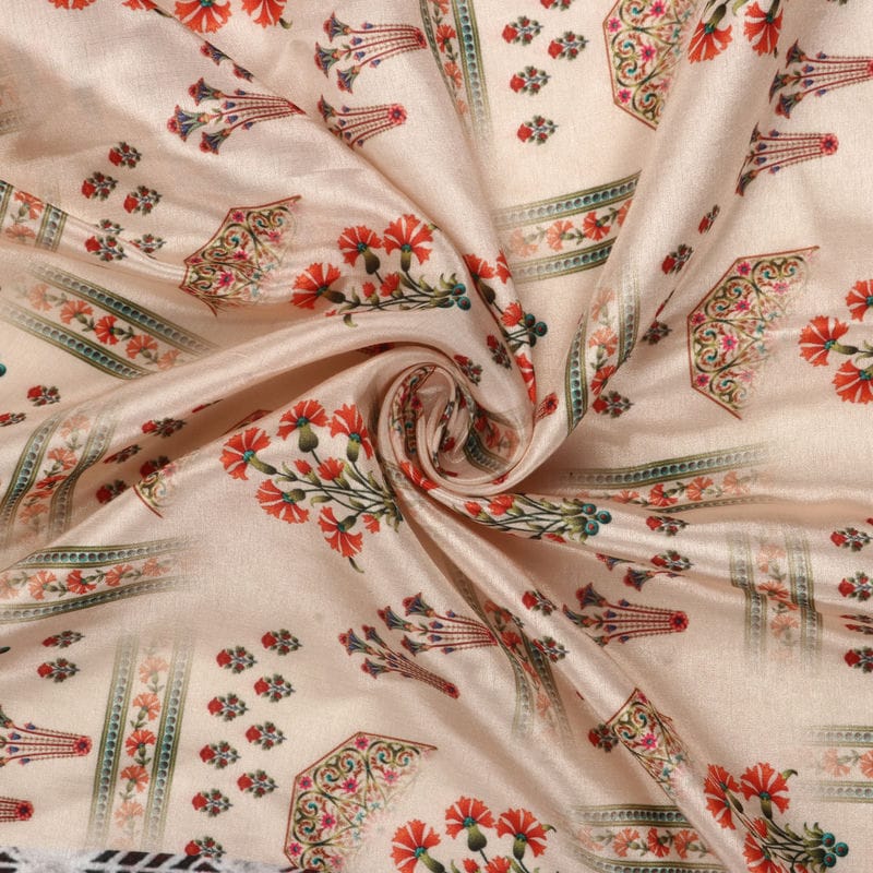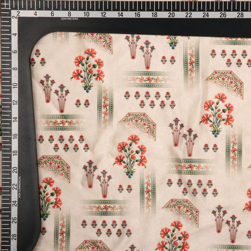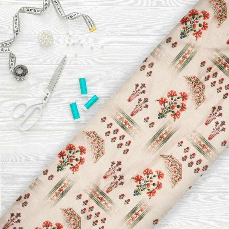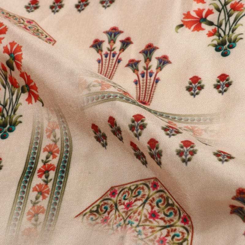 Beige And Maroon Floral Pattern Digital Print Silk Crepe Fabric
