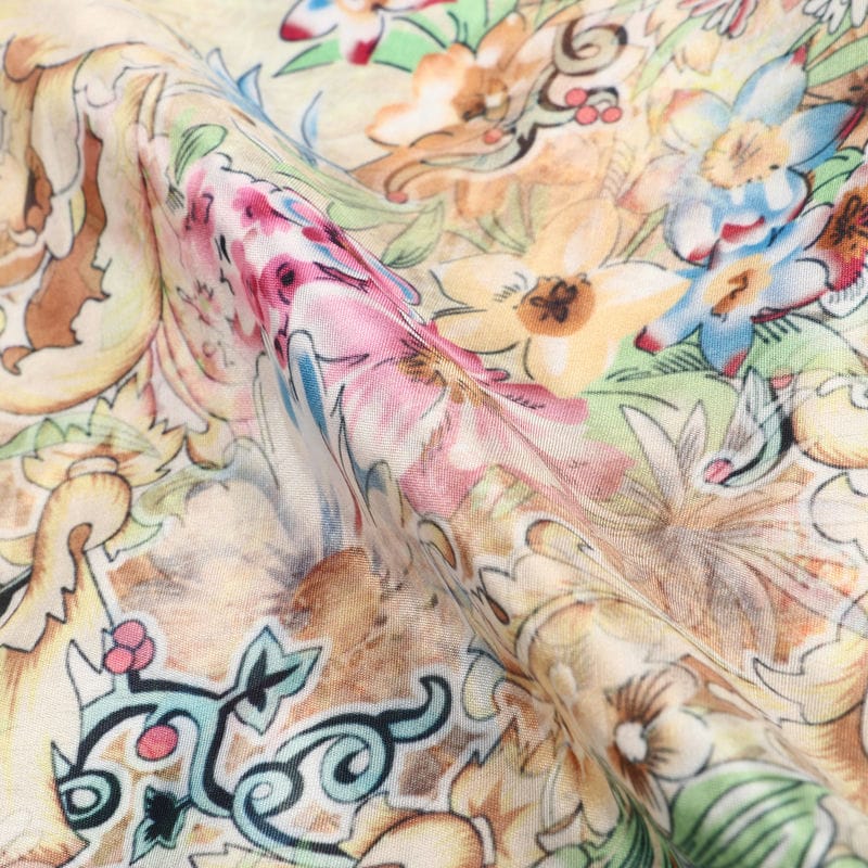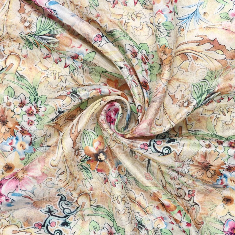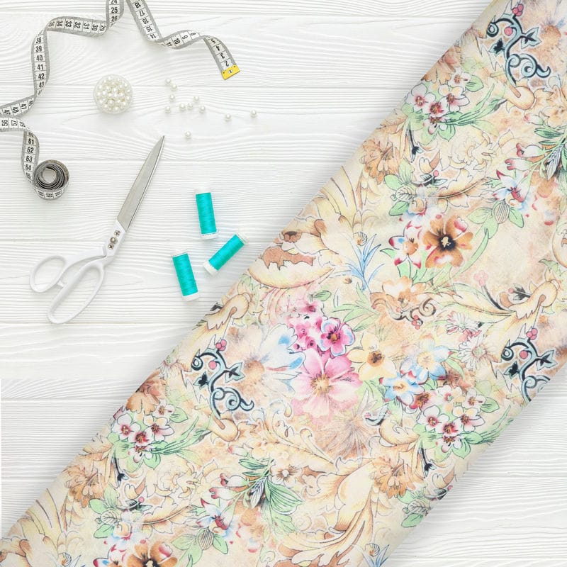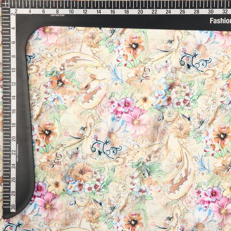 Light Yellow And Pink Floral Pattern Digital Print Silk Crepe Fabric