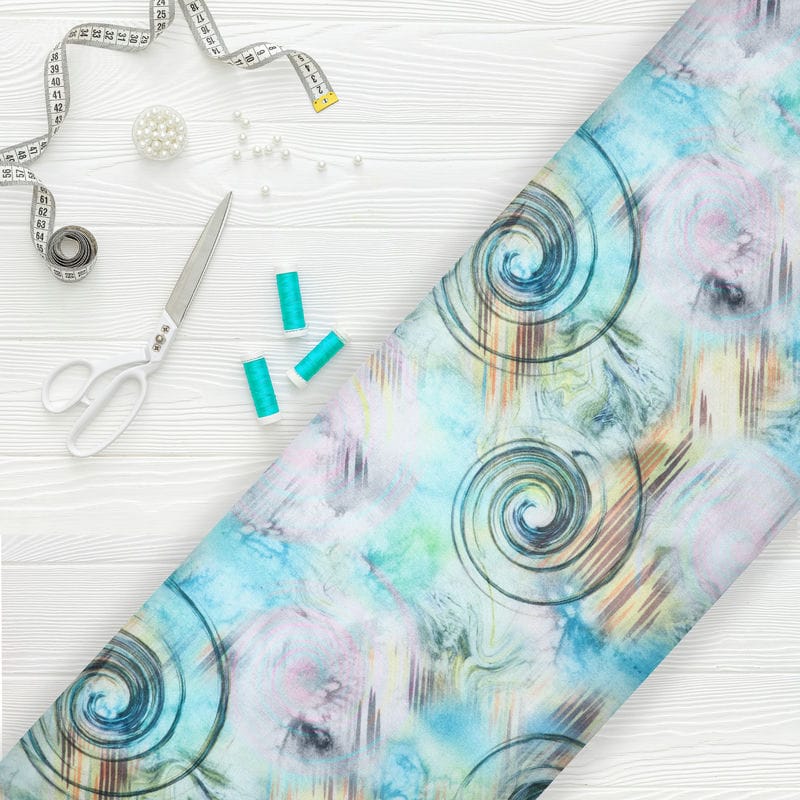 Multi Color Abstract Pattern Digital Print Silk Crepe Fabric