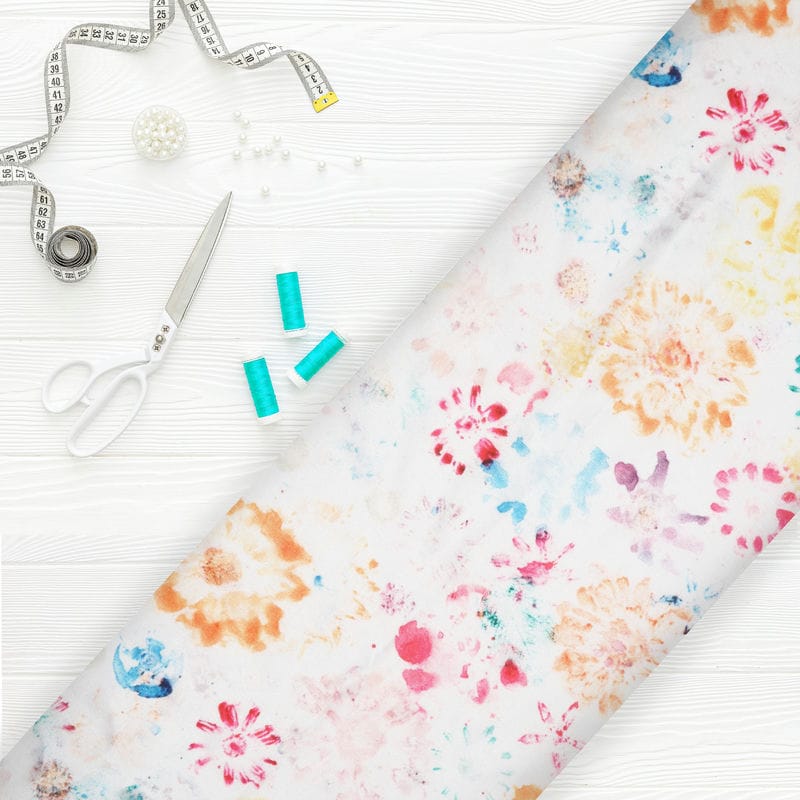 Multi Color Floral Pattern Digital Print Silk Crepe Fabric