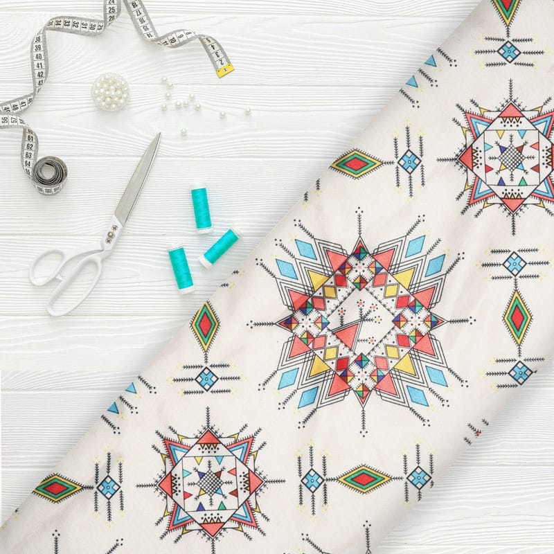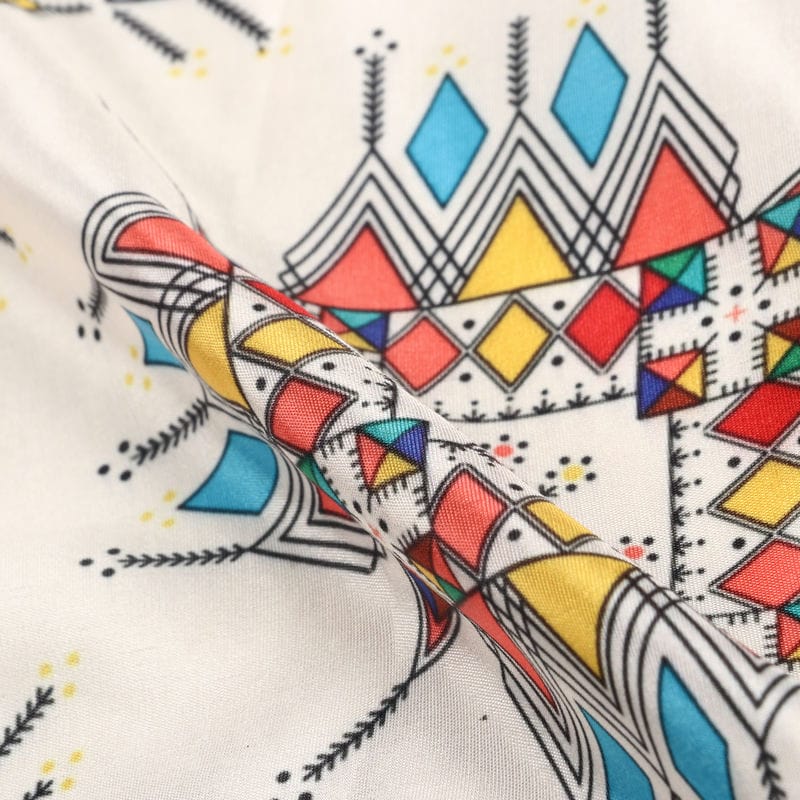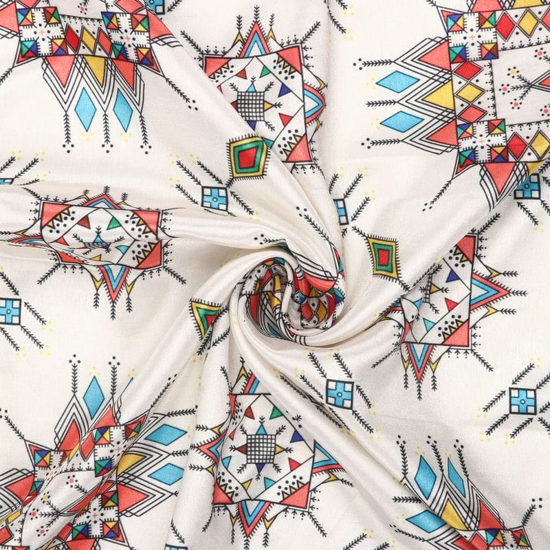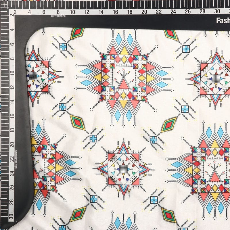 Multi Color Geometric Pattern Digital Print Silk Crepe Fabric