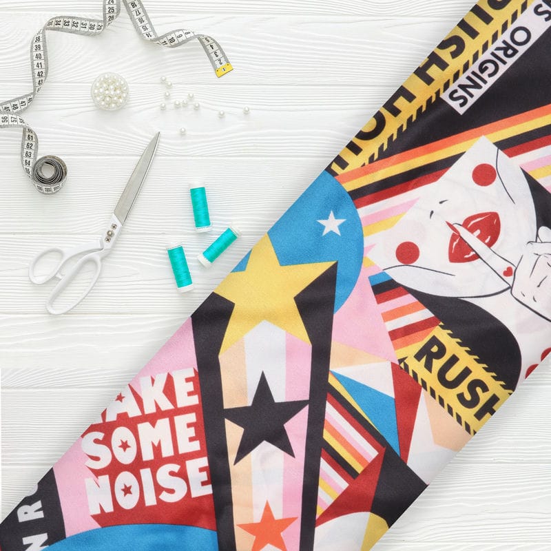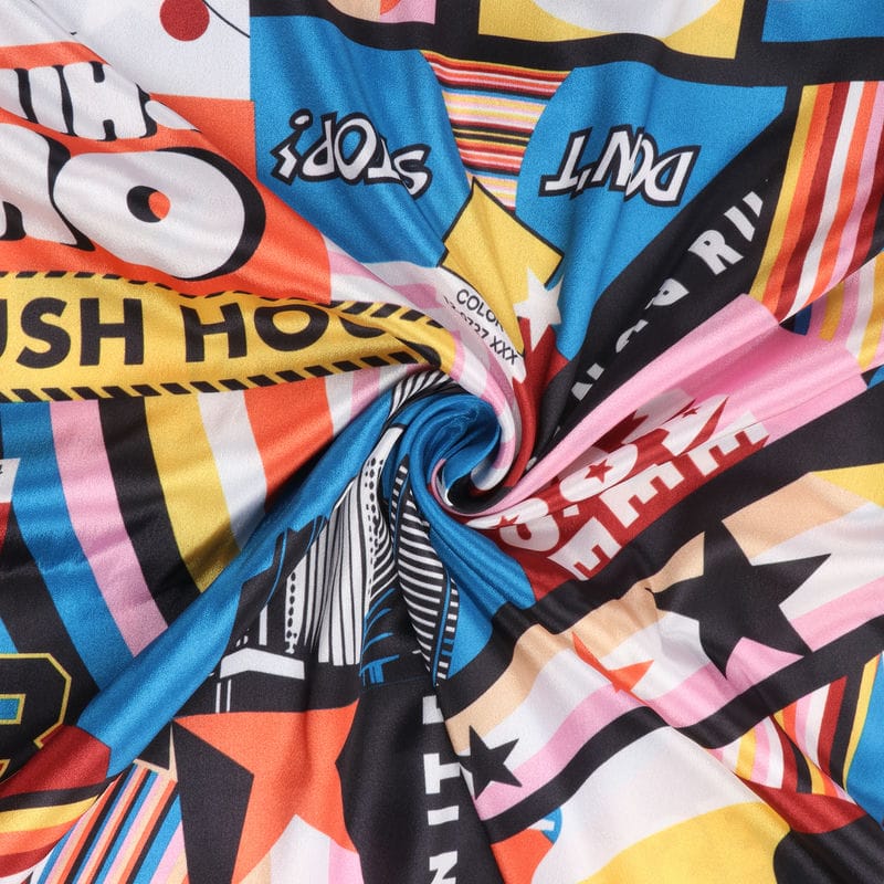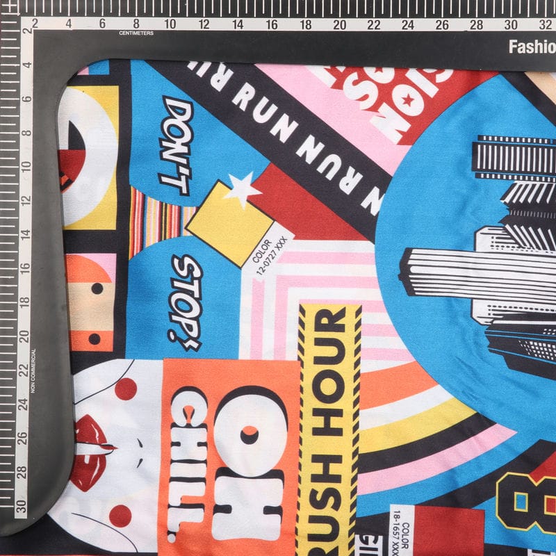 Multi Color Object Pattern Digital Print Silk Crepe Fabric