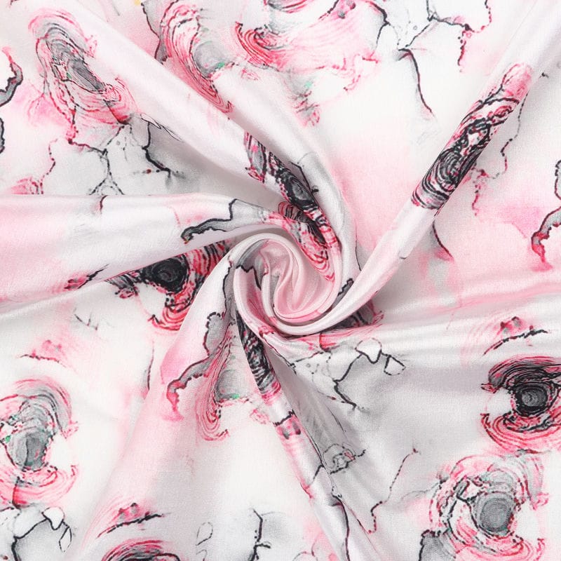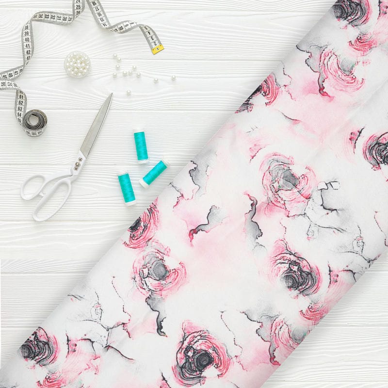 White And Pink Abstract Pattern Digital Print Silk Crepe Fabric