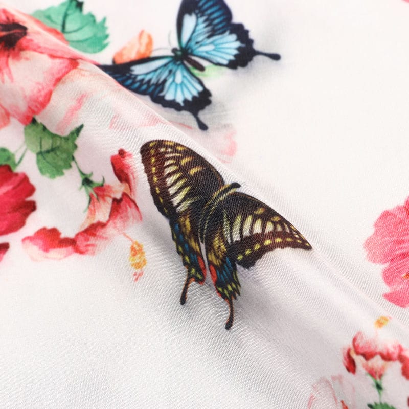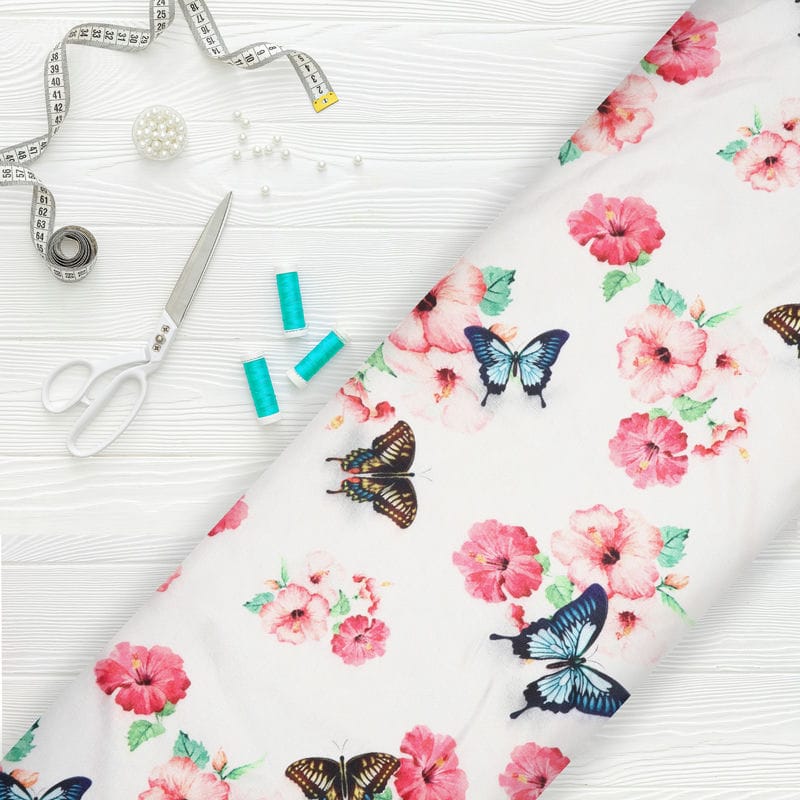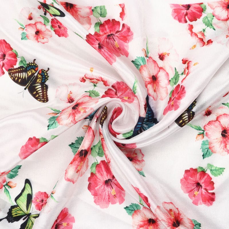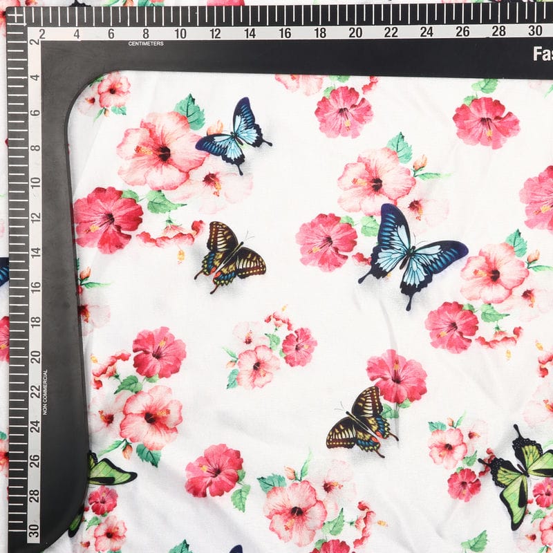 White And Pink Floral Pattern Digital Print Silk Crepe Fabric