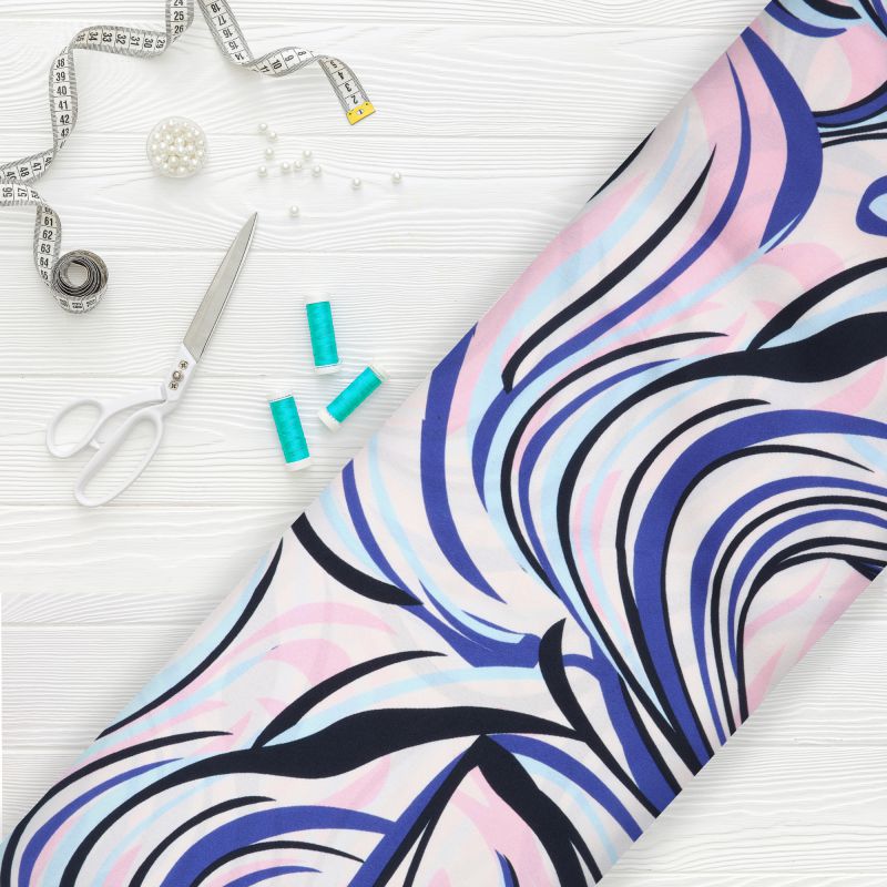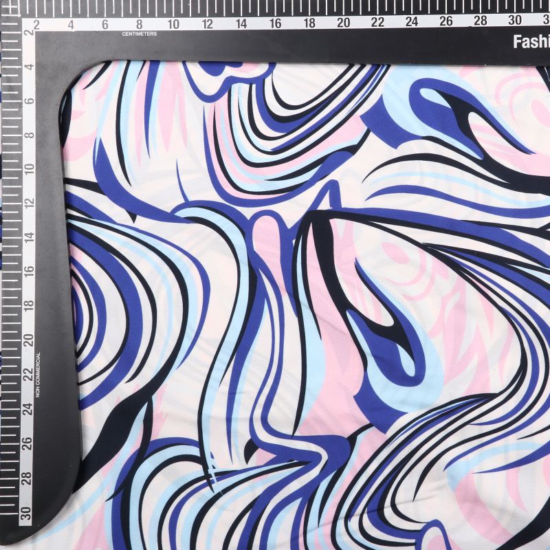 Baby Pink And Blue Abstract Pattern Digital Print Crepe Fabric