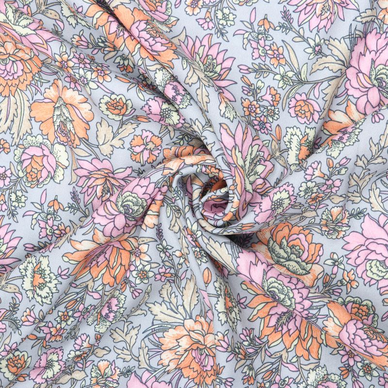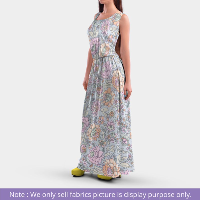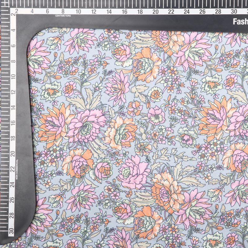 Grey And Pink Floral Pattern Digital Print Moss Crepe Fabric