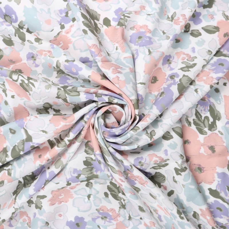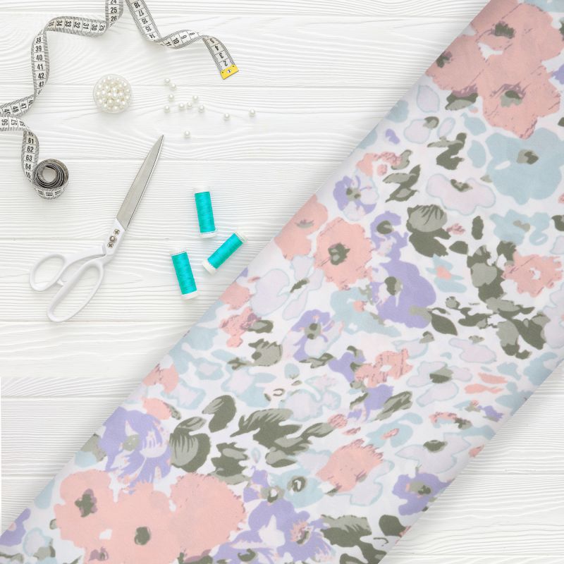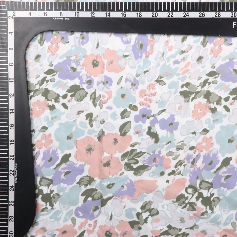 Peach And Lavender Floral Pattern Digital Print Crepe Fabric