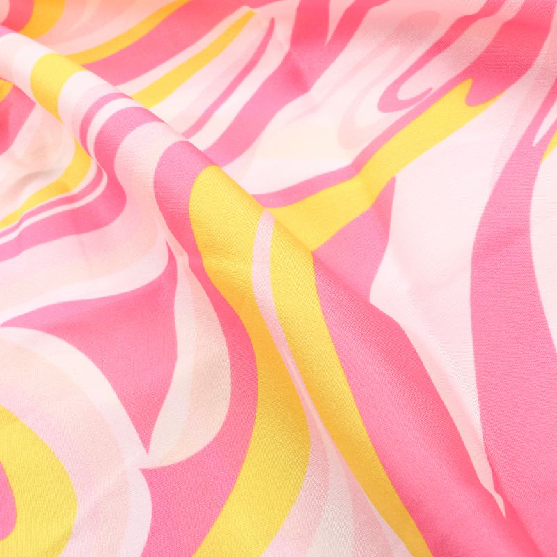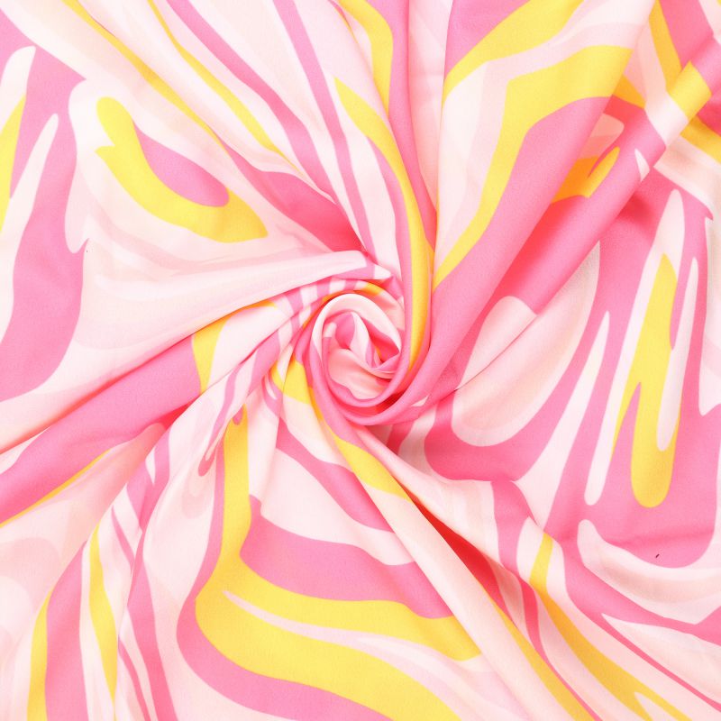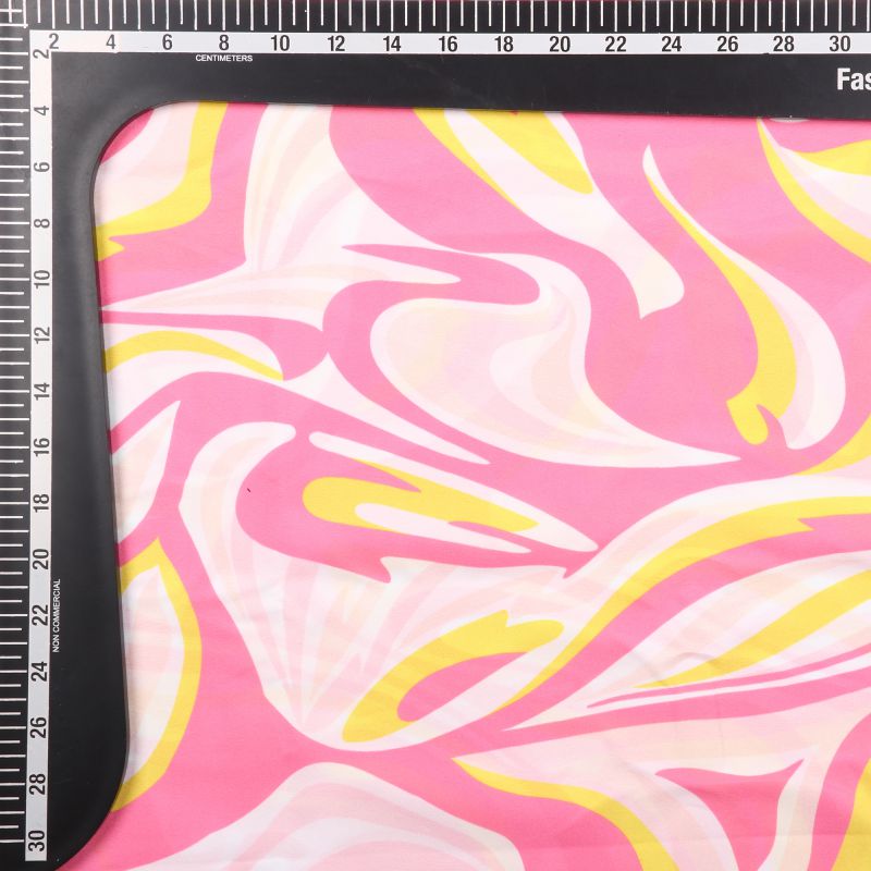 Pink And Yellow Abstract Pattern Digital Print Crepe Fabric