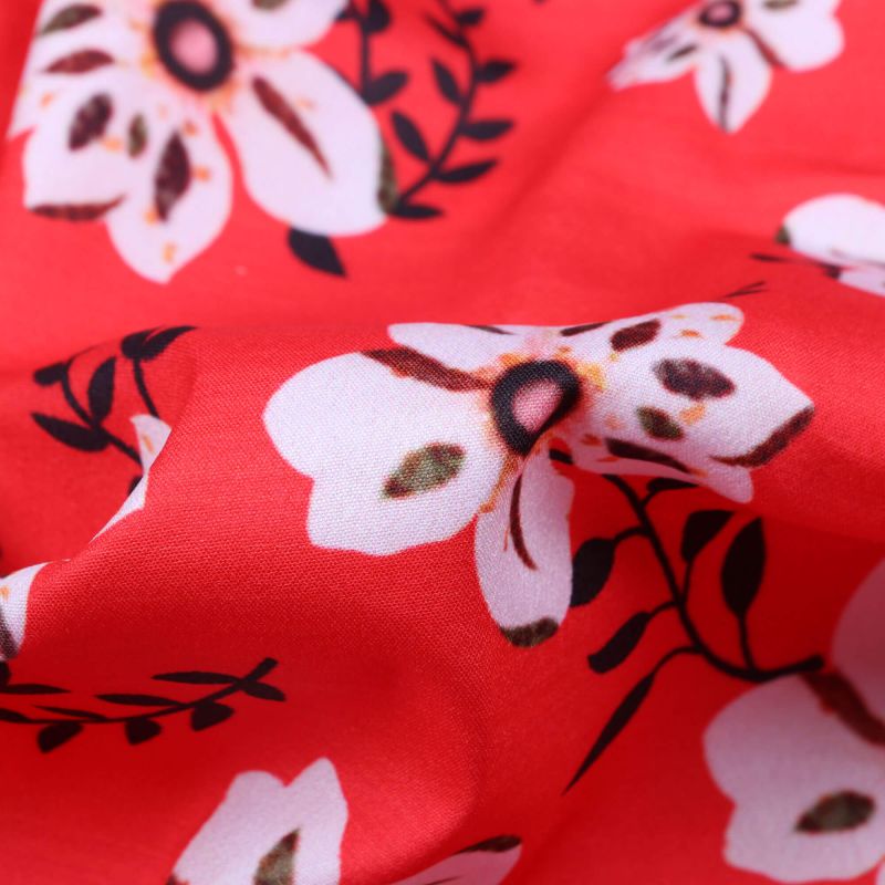 Red And White Floral Pattern Digital Print American Crepe Fabric