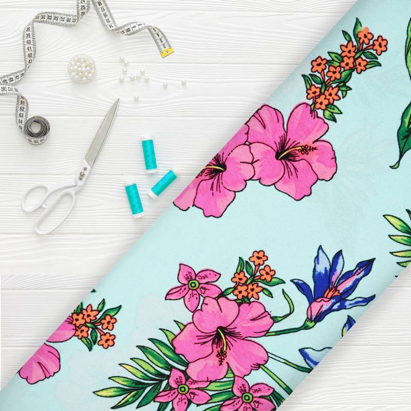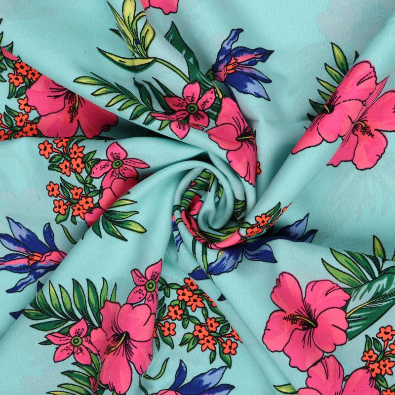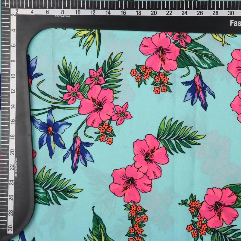Turquoise And Neon Pink Floral Pattern Digital Print Crepe Fabric