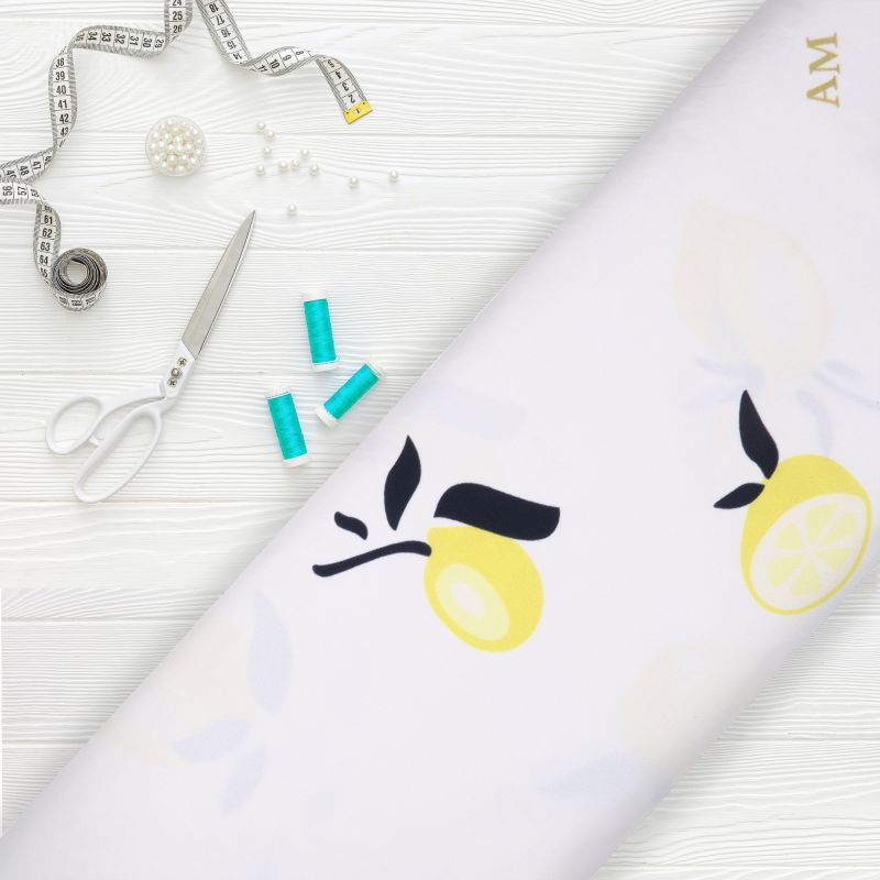 White And Light Yellow Object Pattern Digital Print Crepe Fabric