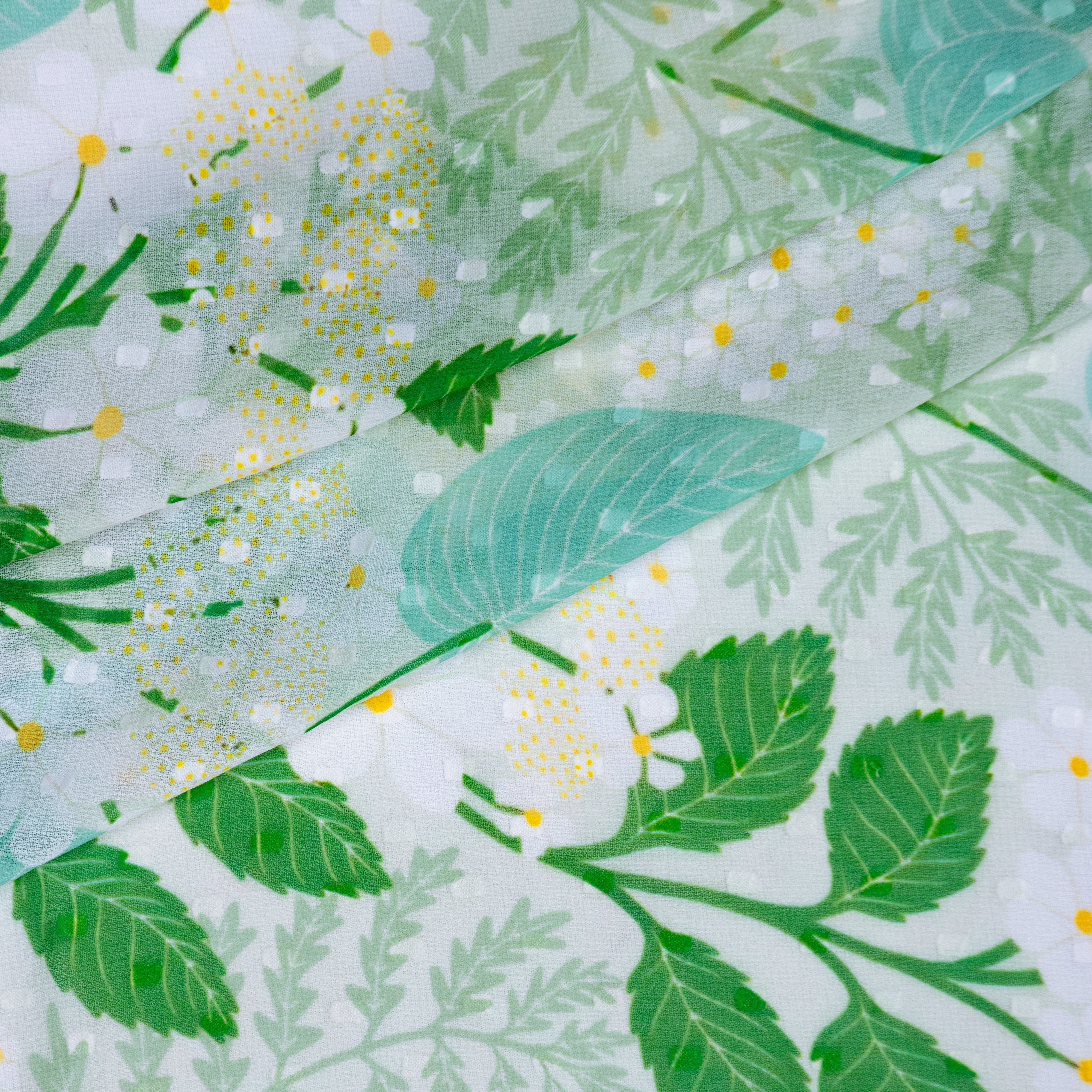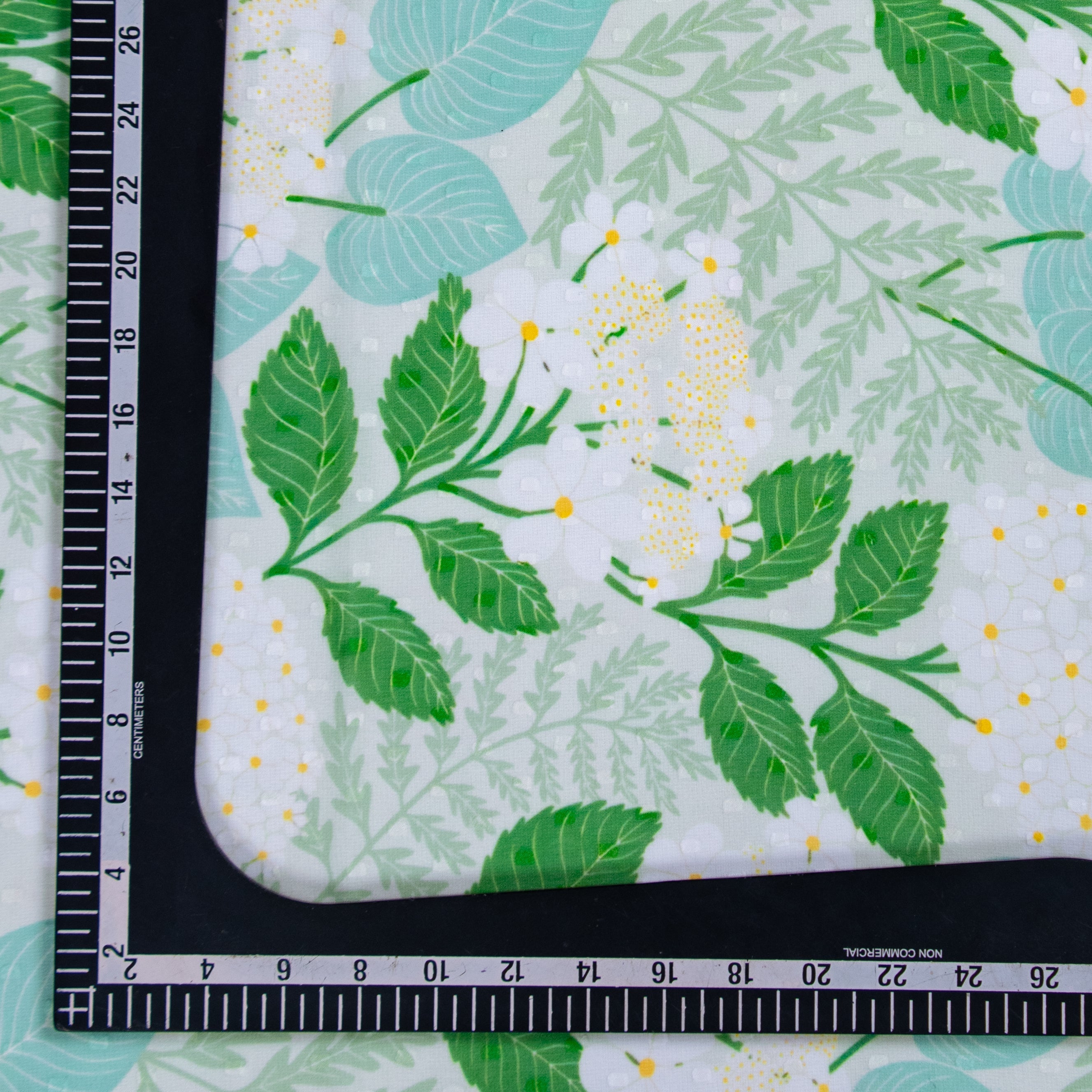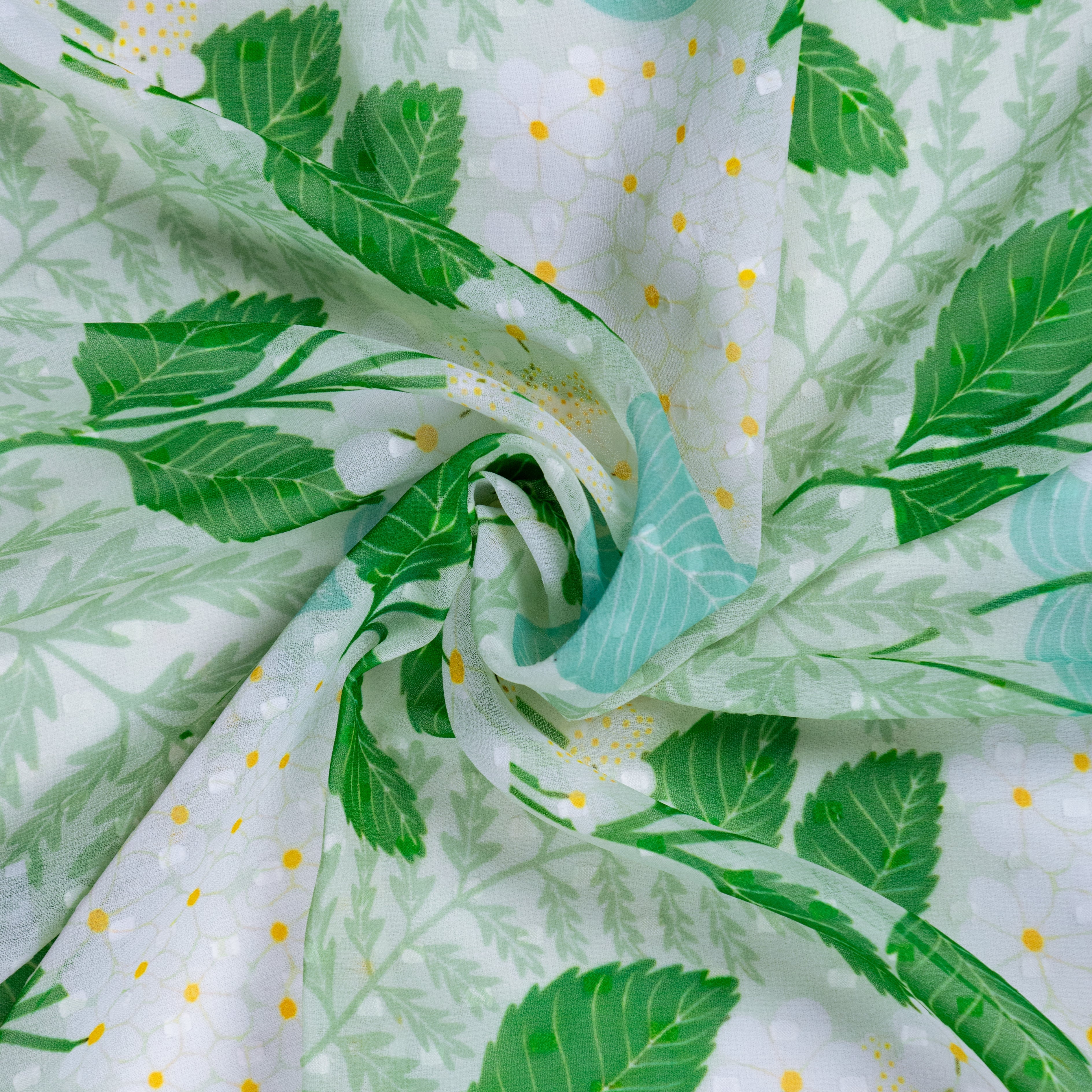 Green and White leaf Pattern digital Print Georgette Dobby Fabric