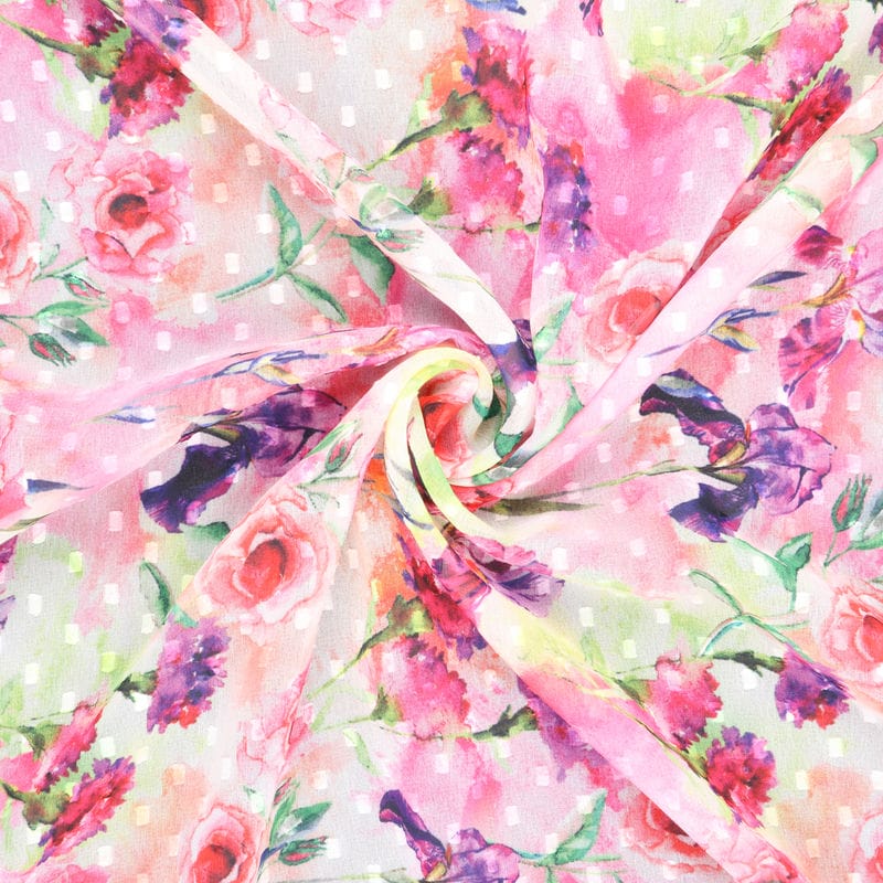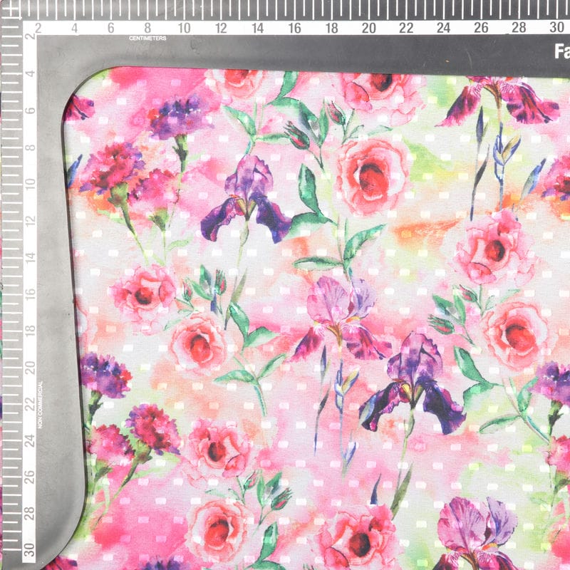 Pink And Purple Floral Pattern Digital Print Georgette Dobby Fabric