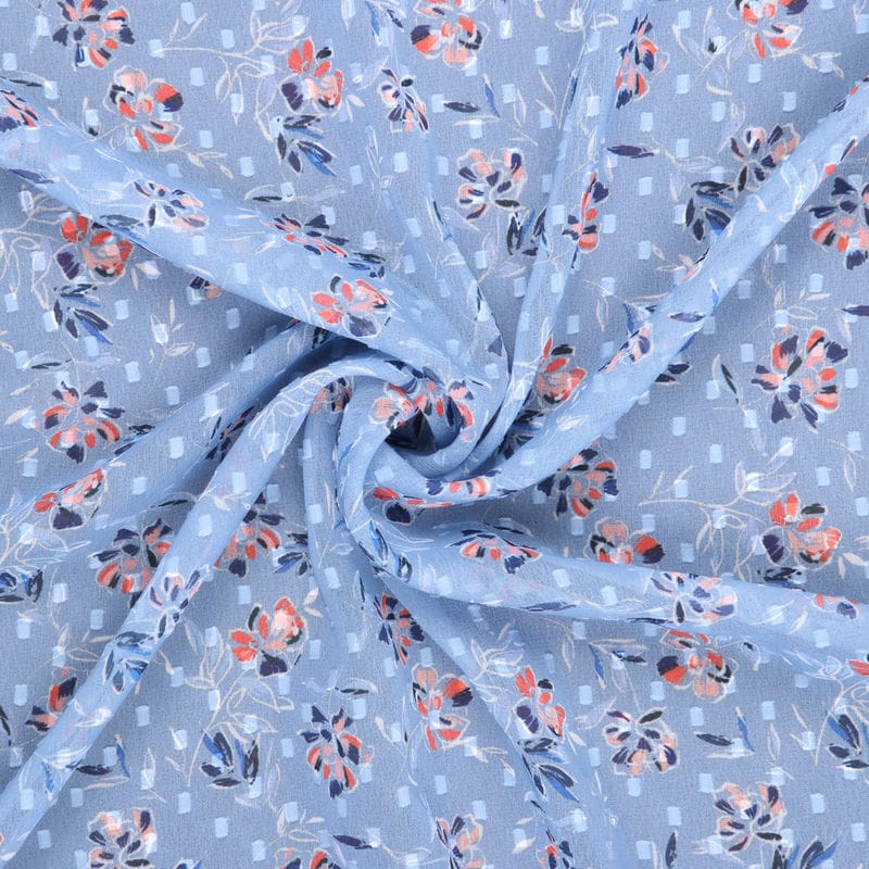 Sky Blue And Ochre Orange Floral Pattern Digital Print Georgette Dobby Fabric