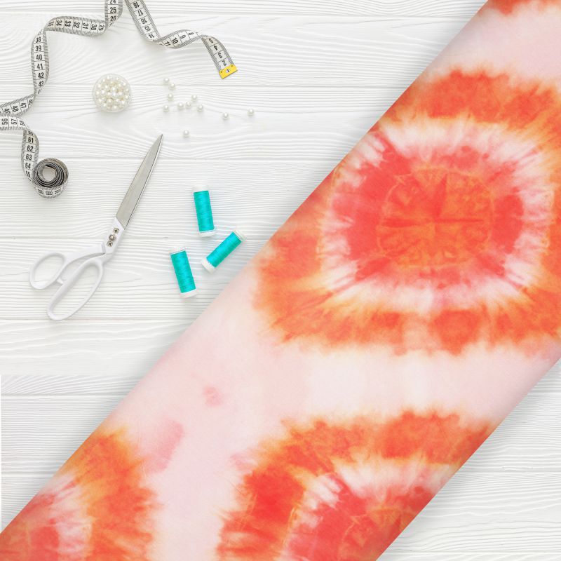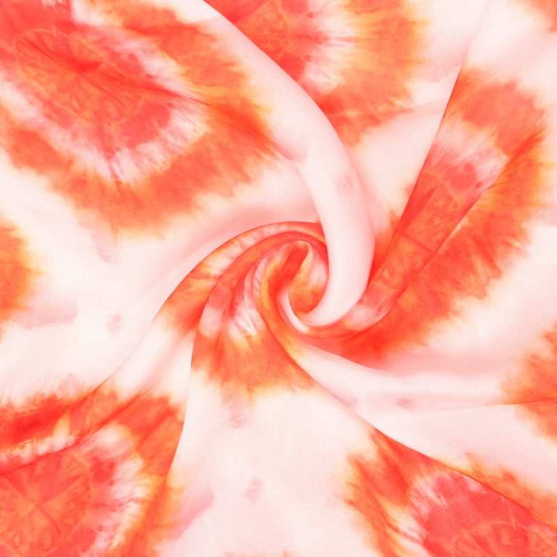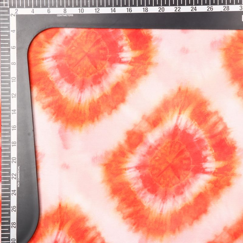 White And Orange Shibori Pattern Digital Print Georgette Satin Fabric