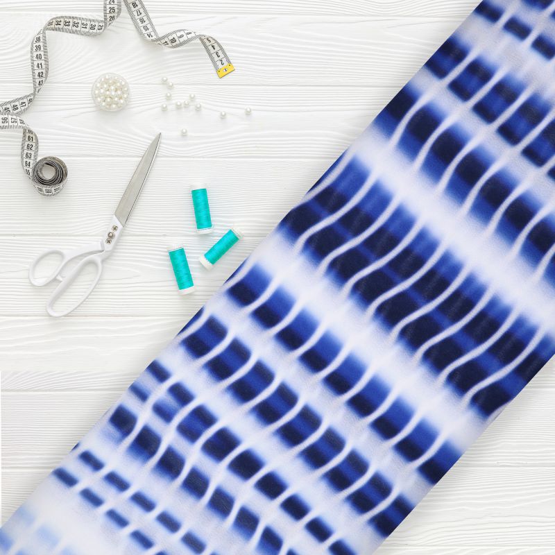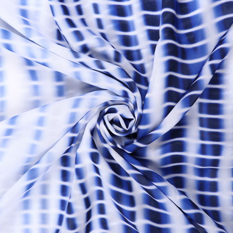Blue And White Shibori Pattern Digital Print Georgette Fabric