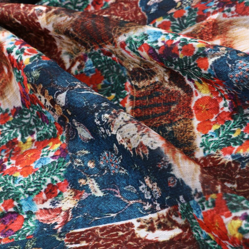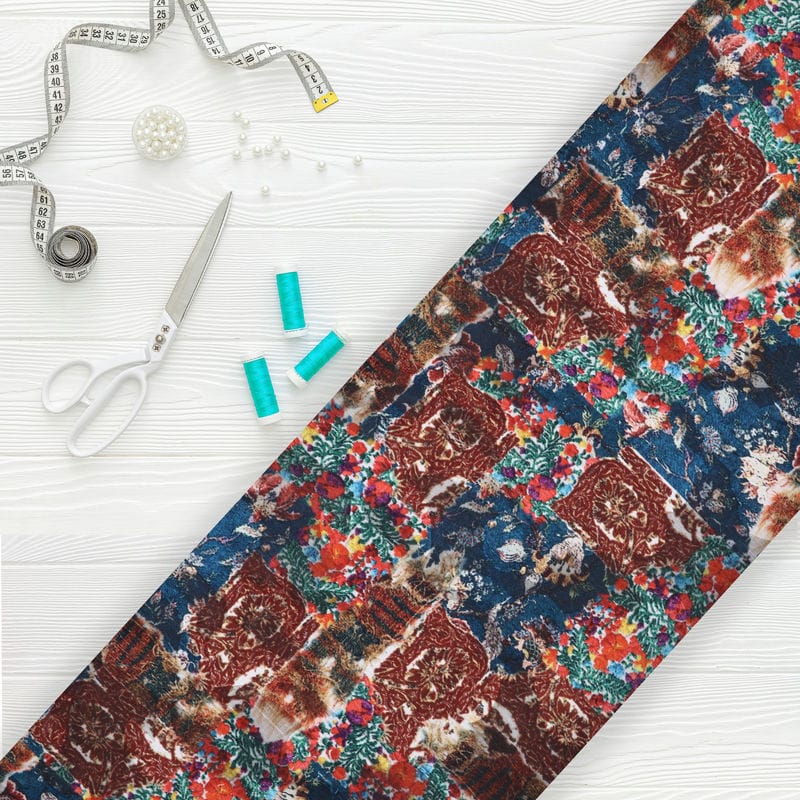 Maroon And Navy Blue Floral Pattern Digital Print Jacquard Georgette Fabric