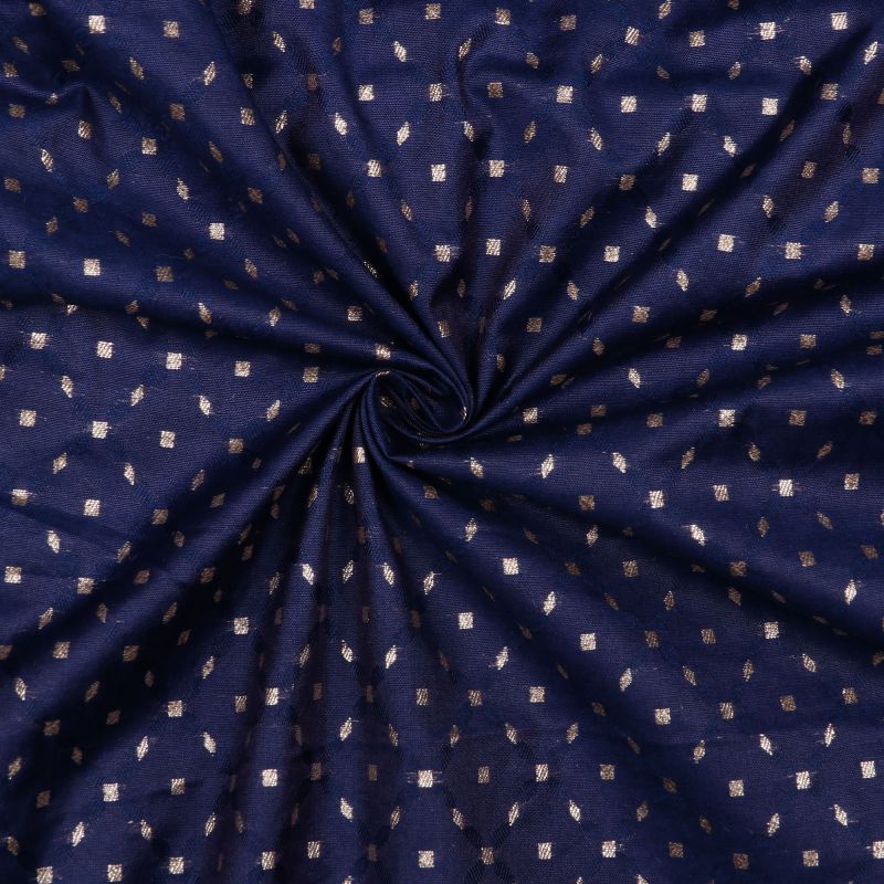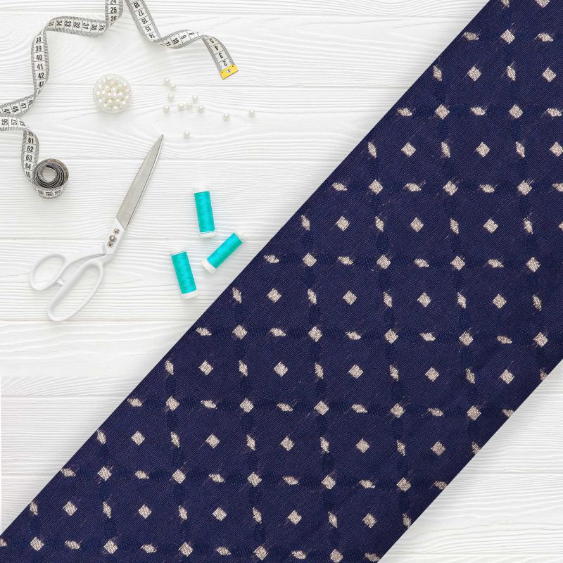 Navy Blue Symmetries Pattern Dyed Jacquard Chanderi Fabric
