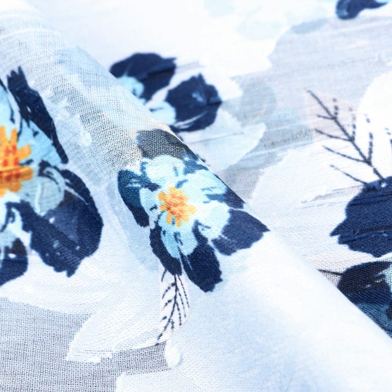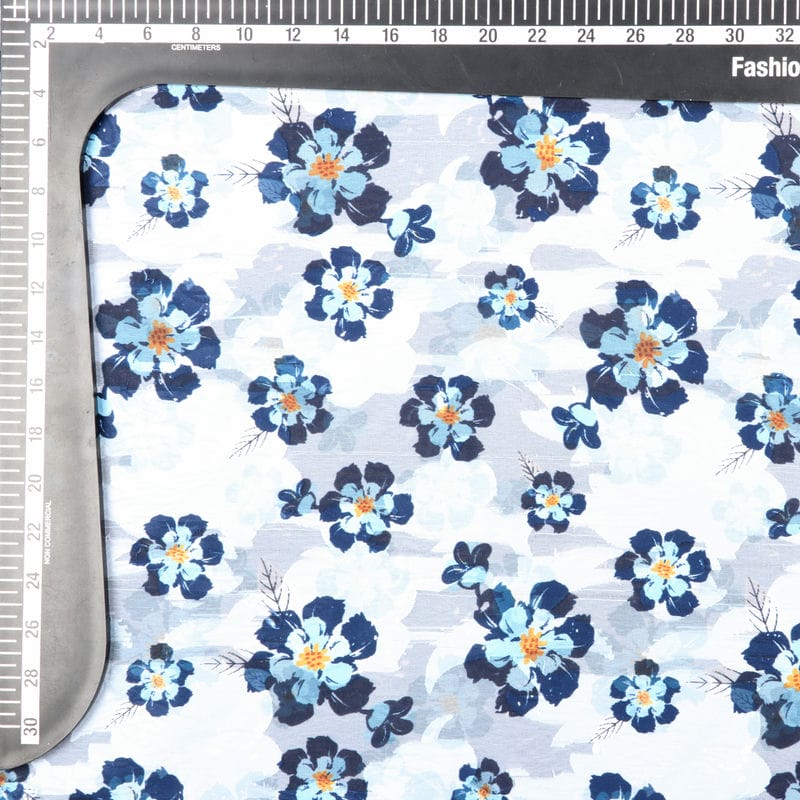 Sky Blue And Yellow Floral Pattern Digital Print Jacquard Georgette Fabric