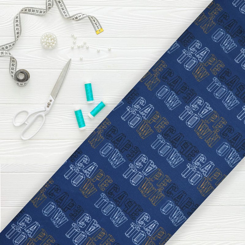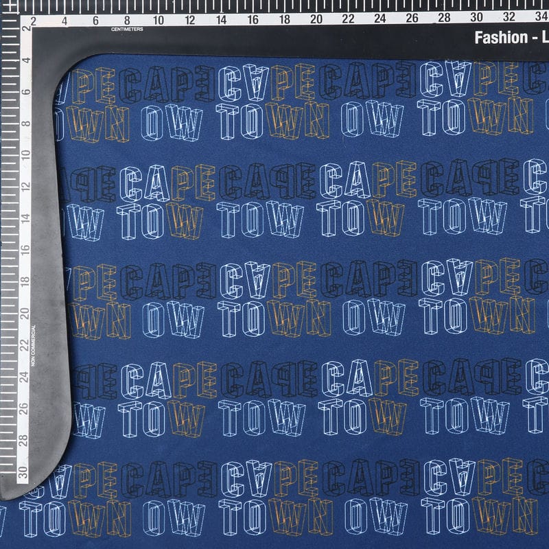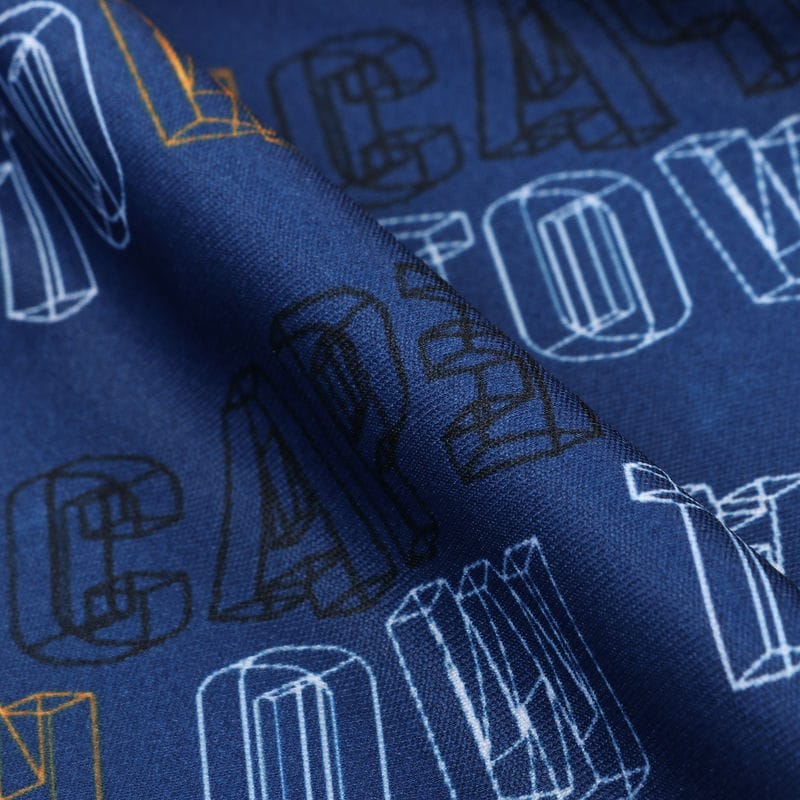 Navy Blue And White Kids Pattern Digital Print Lycra Fabric