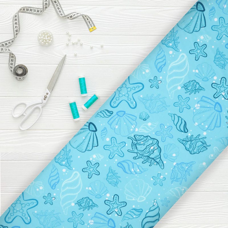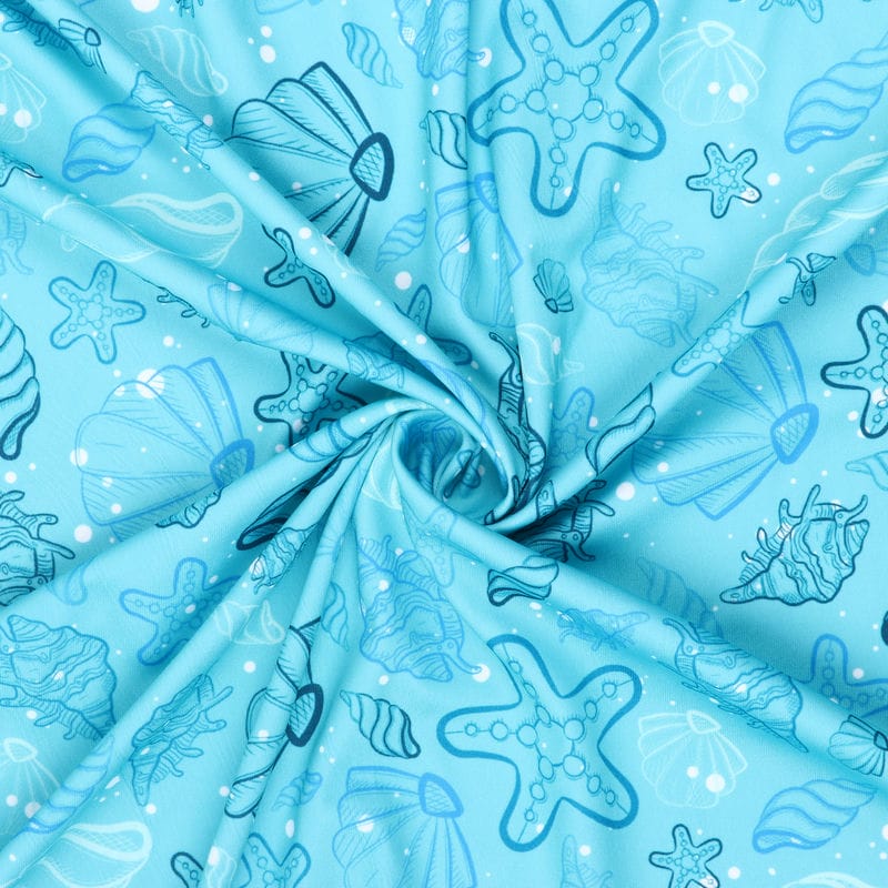 Sky Blue And White Kids Pattern Digital Print Lycra Fabric