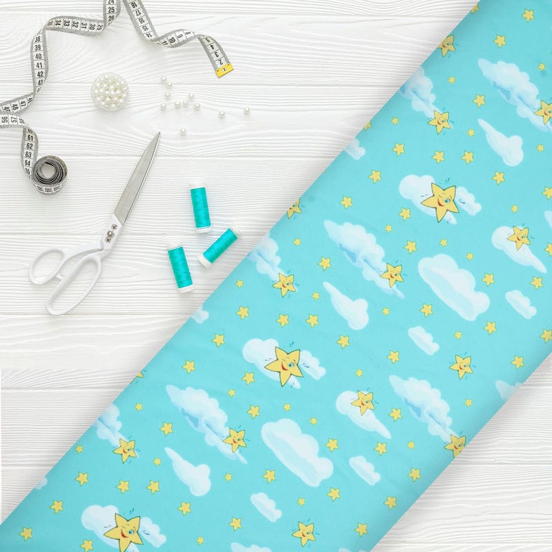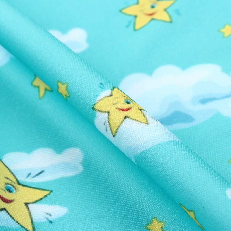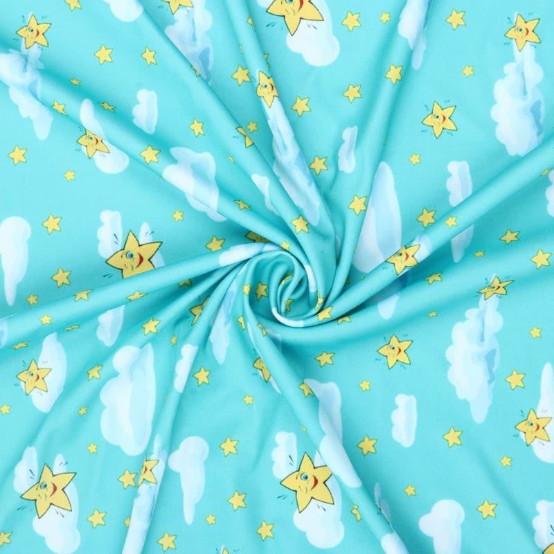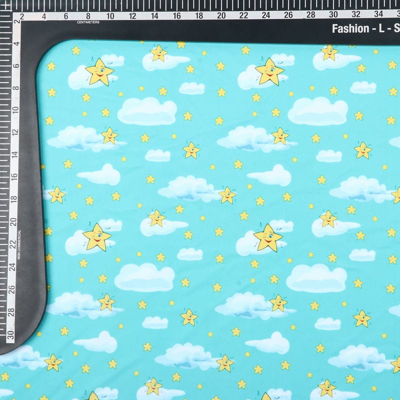 Turquoise And White Kids Pattern Digital Print Lycra Fabric