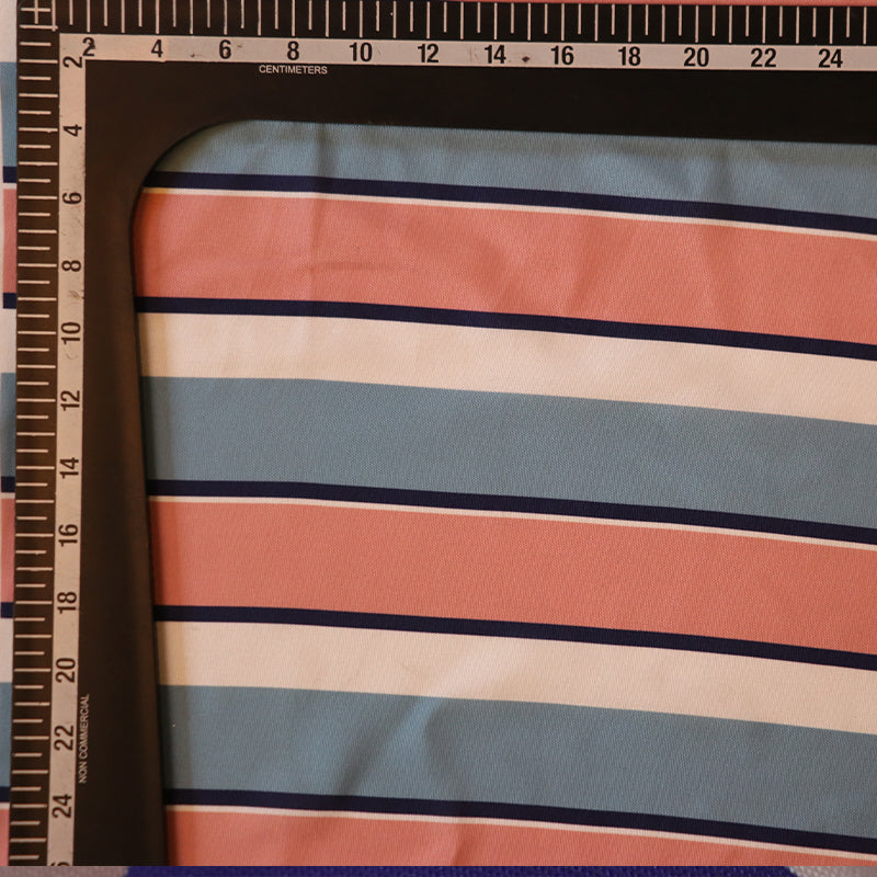 Blue And Pink Stripes Pattern Digital Print Rayon Fabric.