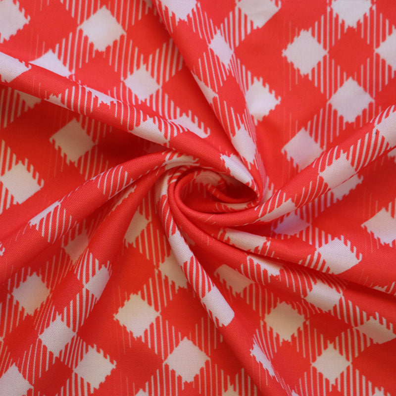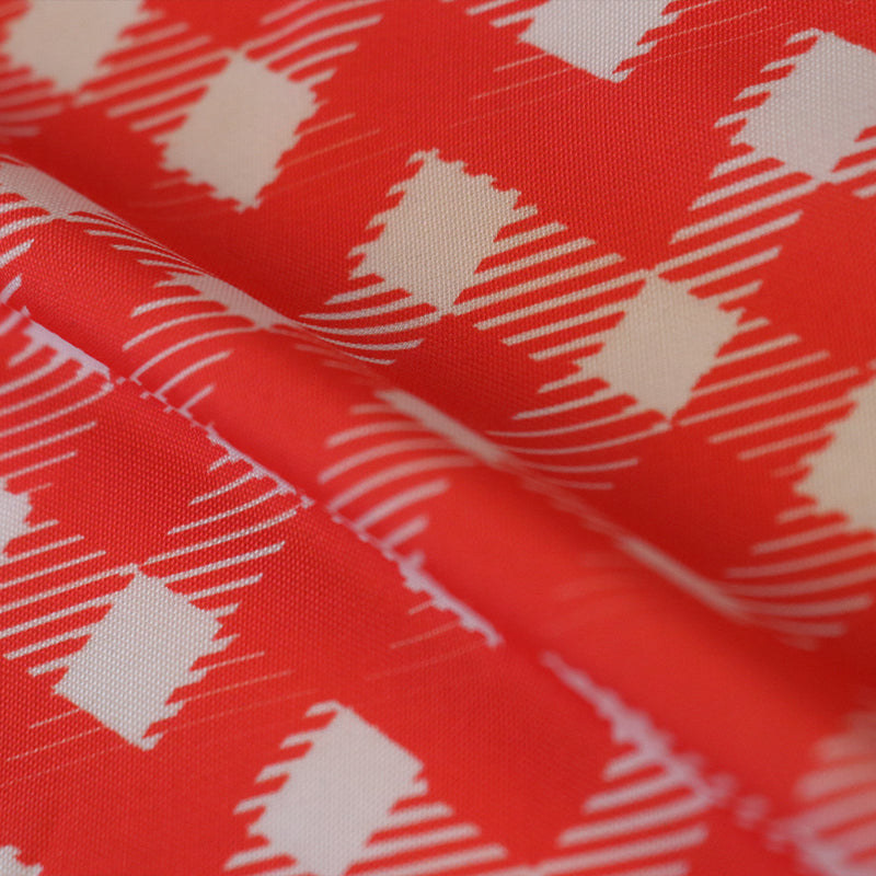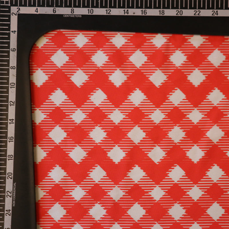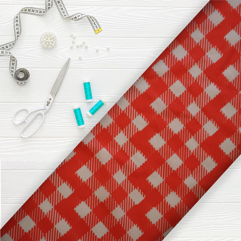 Red And White Checks Pattern Digital Print Rayon Fabric.