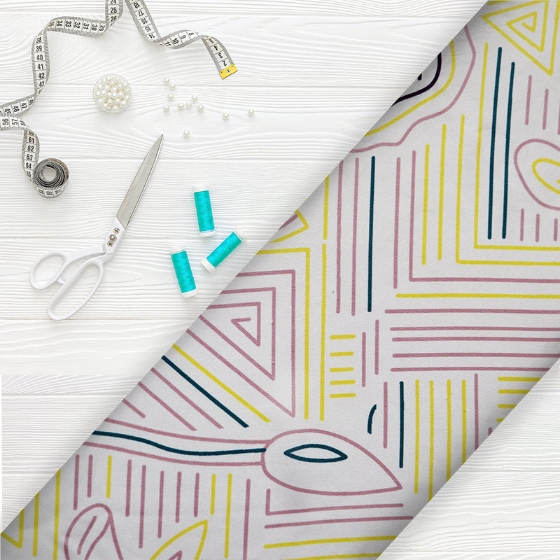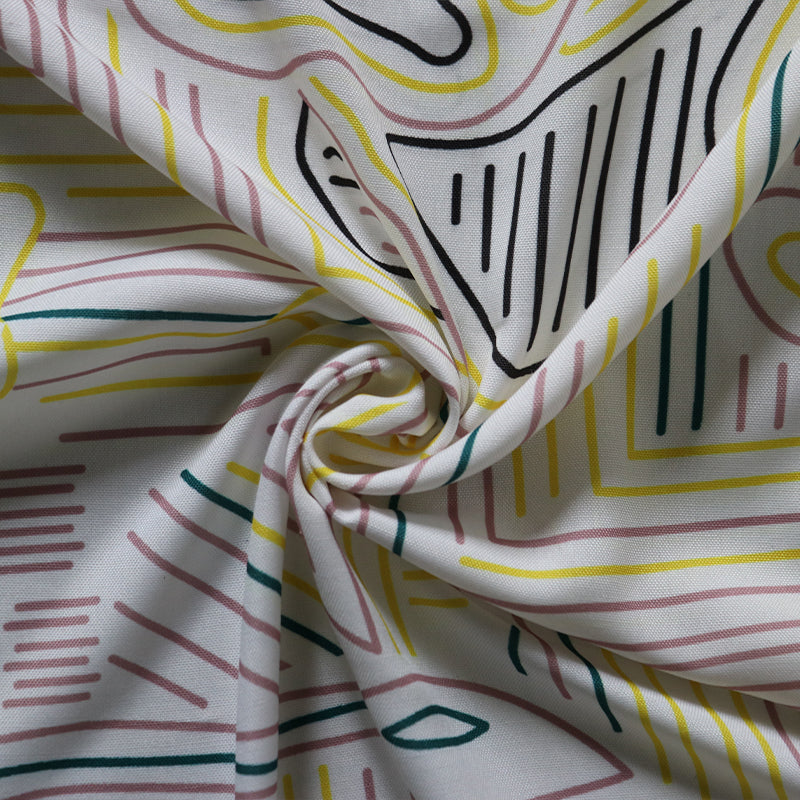 White And Pink Color Abstract Print Pattern Digital Print Rayon Fabric.