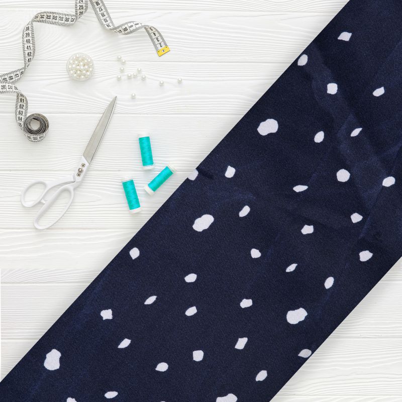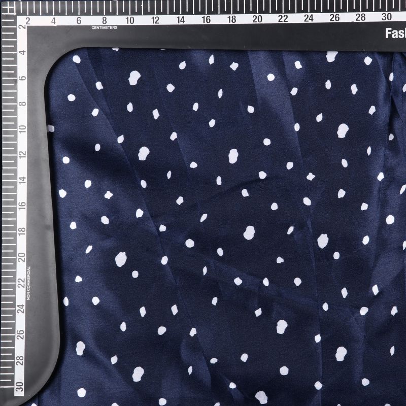 Navy Blue And White Abstract Pattern Screen Print Ultra Satin Fabric