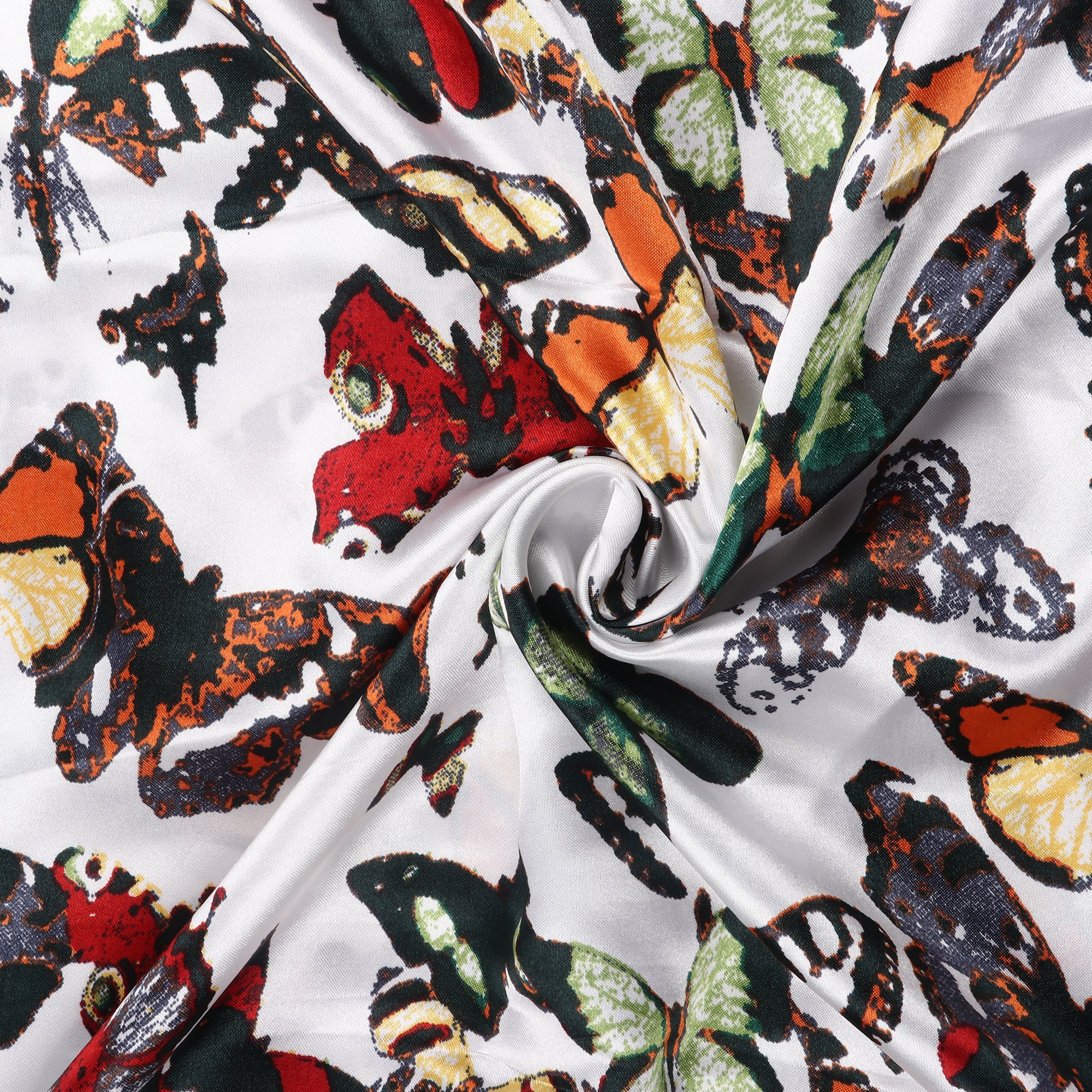White And Black Butterfly Pattern Digital Print Ultra Satin Fabric