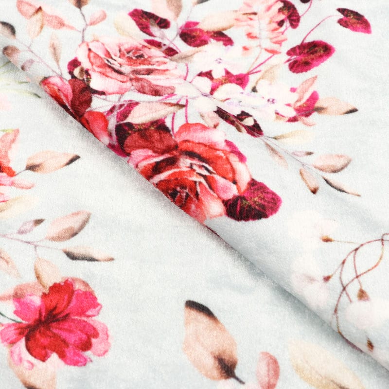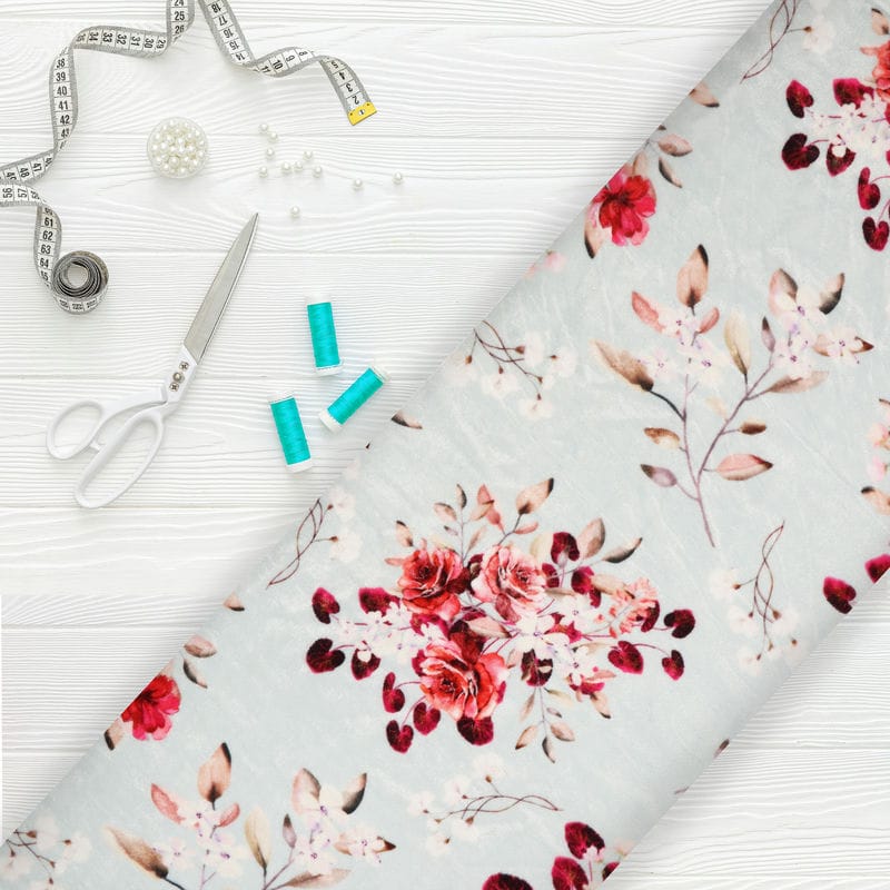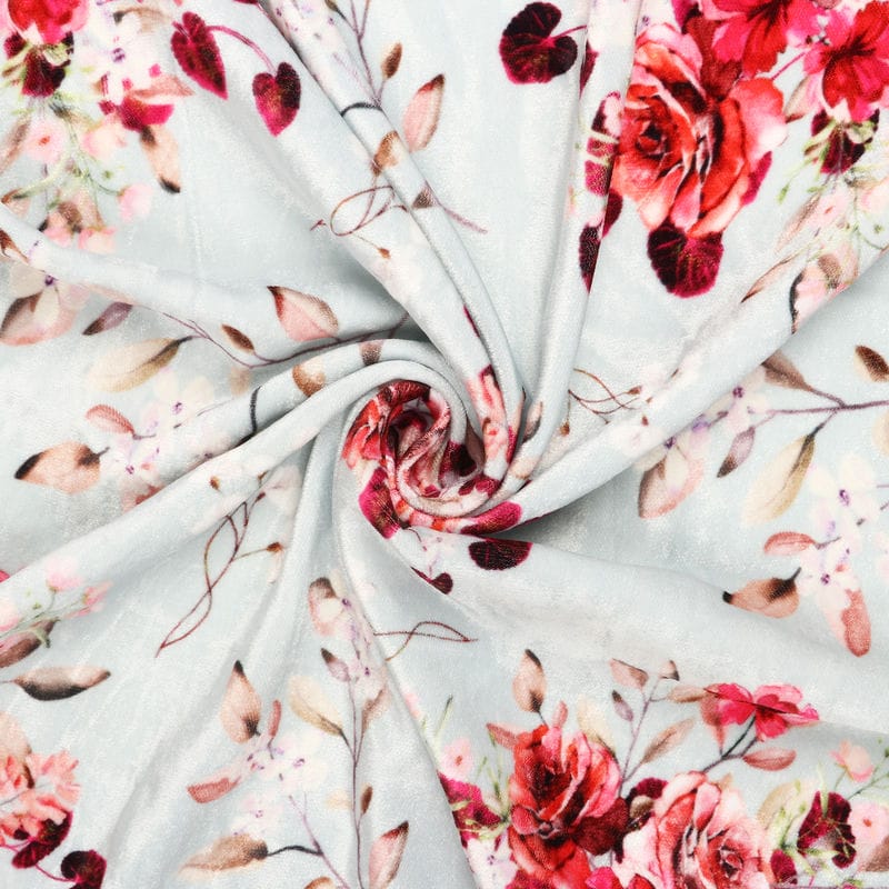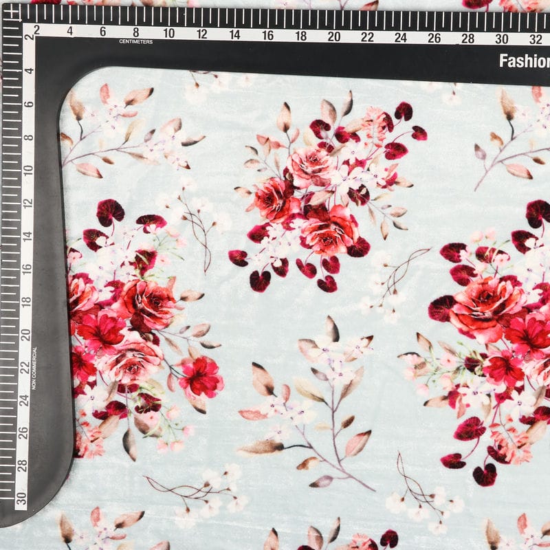 Baby Blue And Pink Floral Pattern Digital Print Velvet Fabric