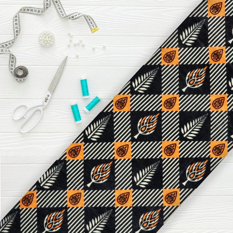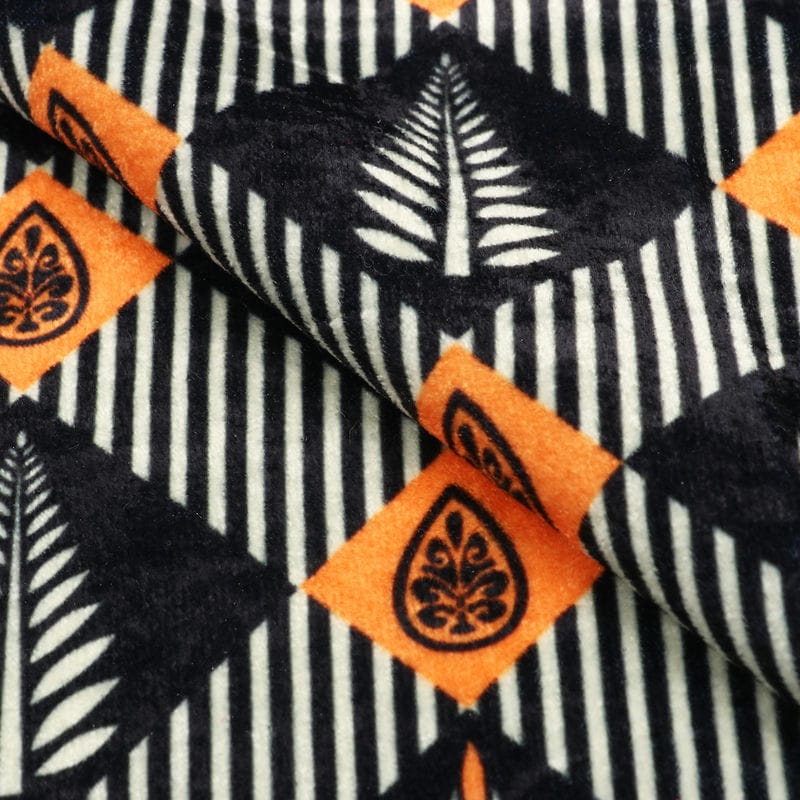 Black And Orange Leaf Pattern Digital Print Velvet Fabric