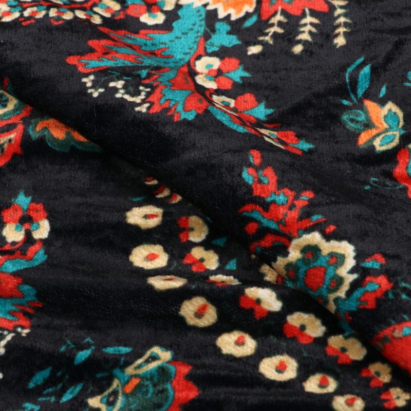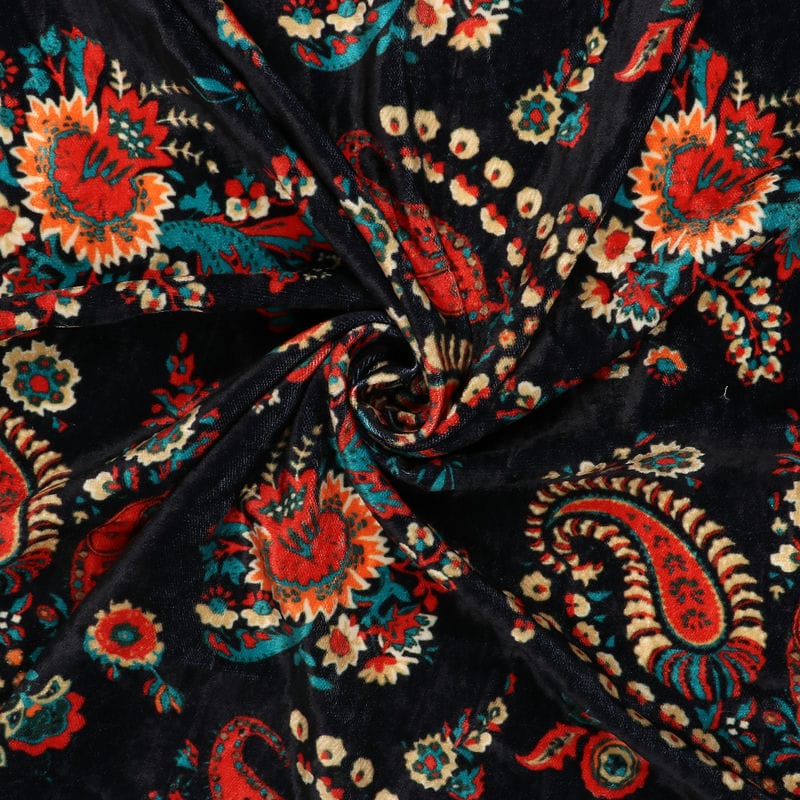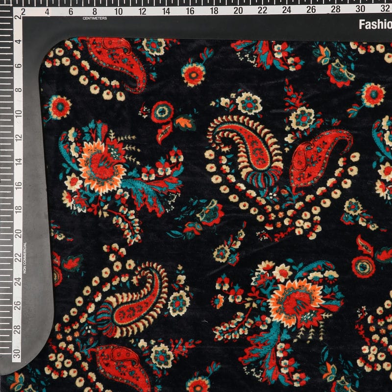 Dark Blue And Red Traditional Pattern Digital Print Velvet Fabric