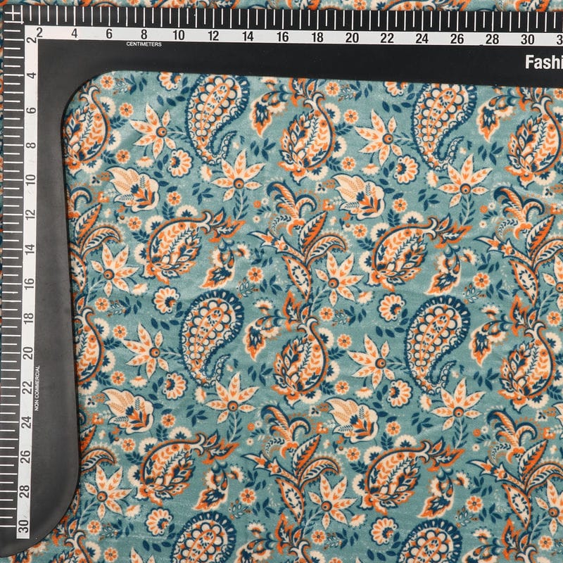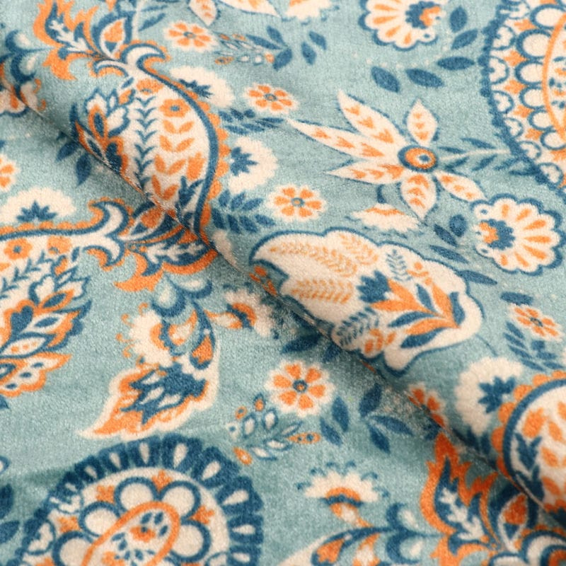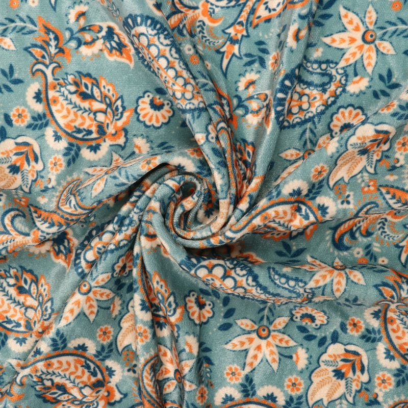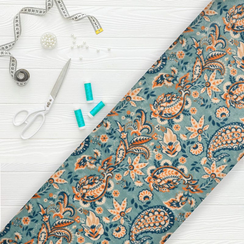 Sapphire And Orange Floral Pattern Digital Print Velvet Fabric