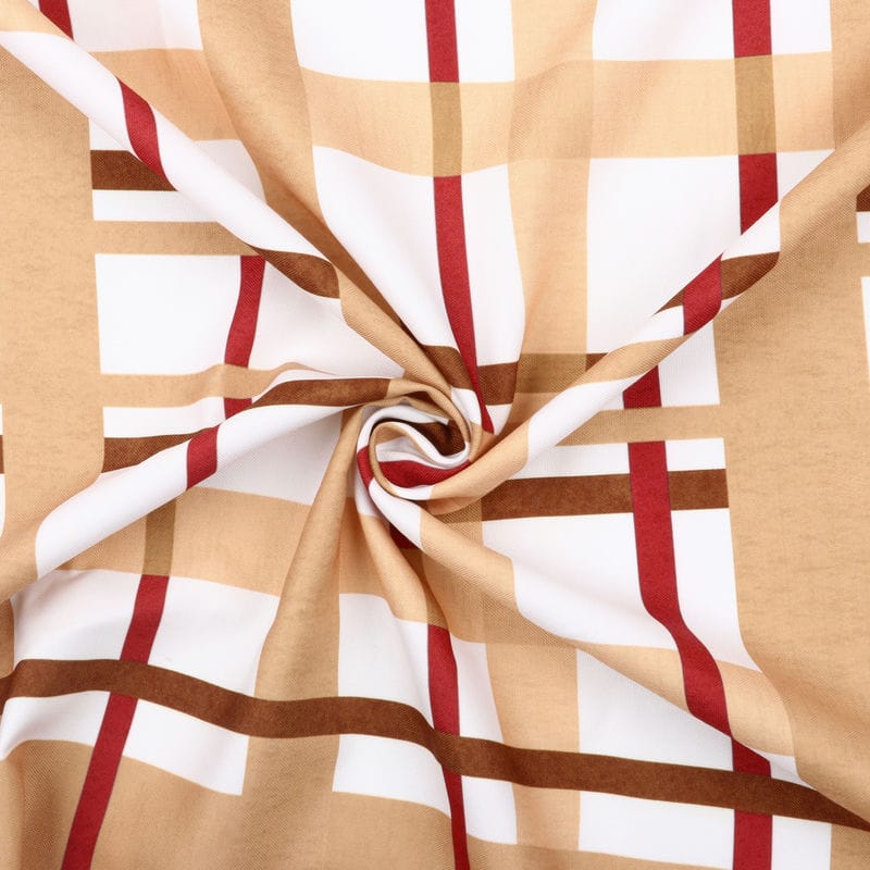 Beige And White Checks Pattern Digital Print Rayon Fabric