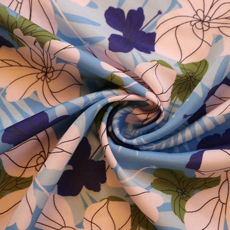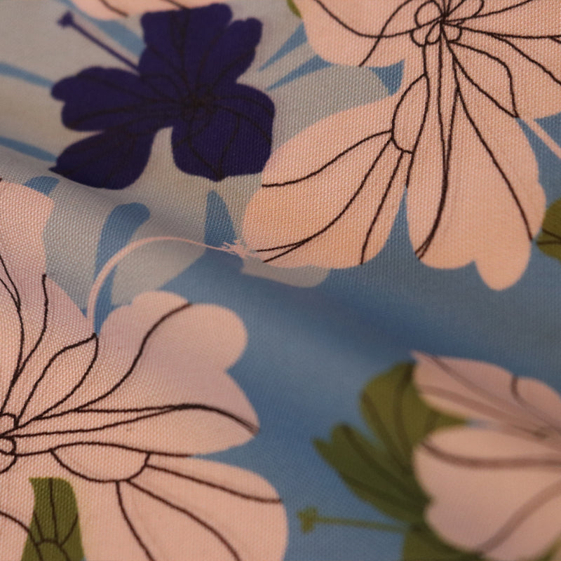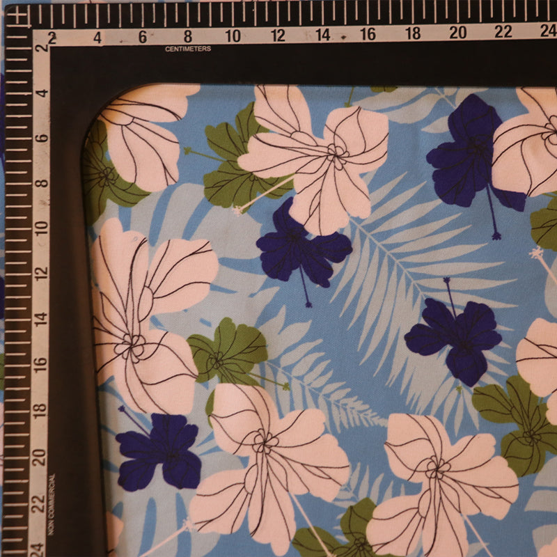 Blue And Green Floral And Leaves Pattern Digital Print Rayon Fabric.
