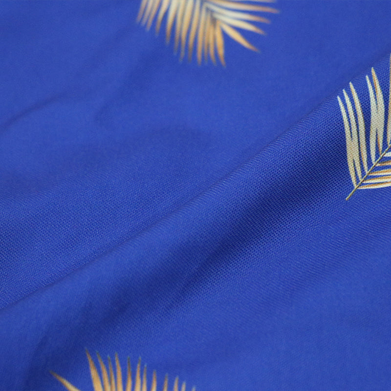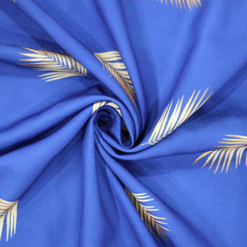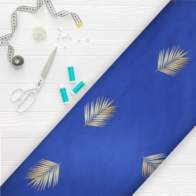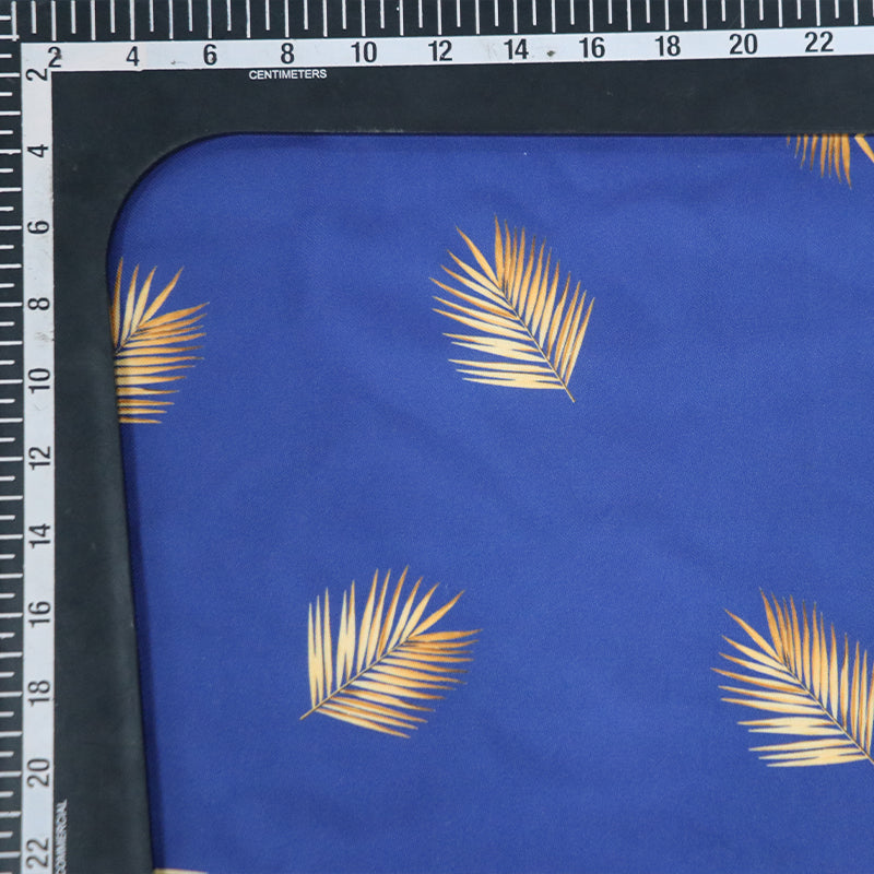 Blue And Yellow Spiky Leaves Print Pattern Digital Print Rayon Fabric.