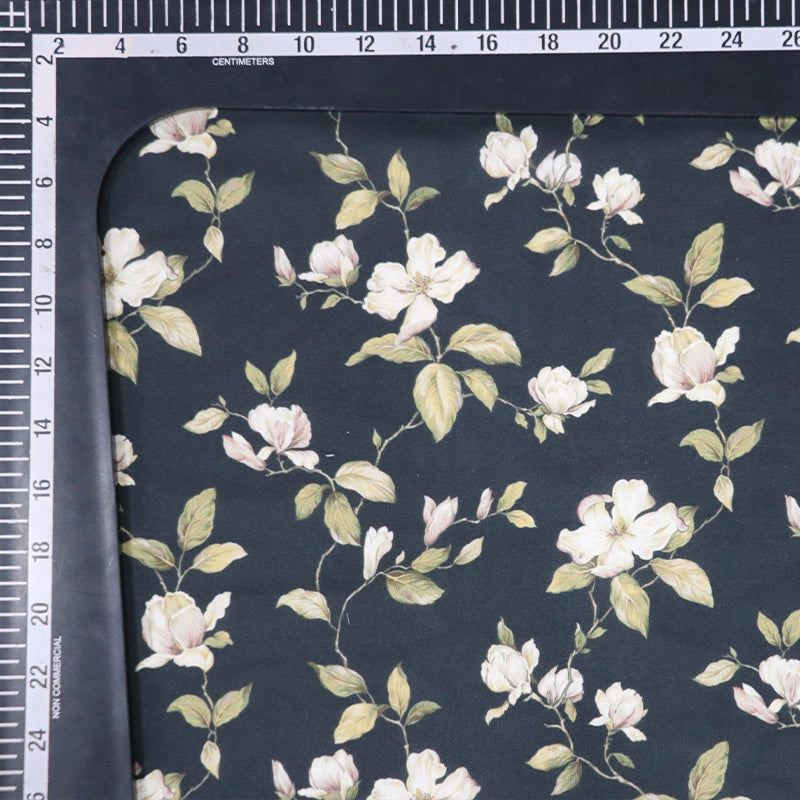 Beige And Tea Green Floral Veil Pattern Digital Print Rayon Fabric.