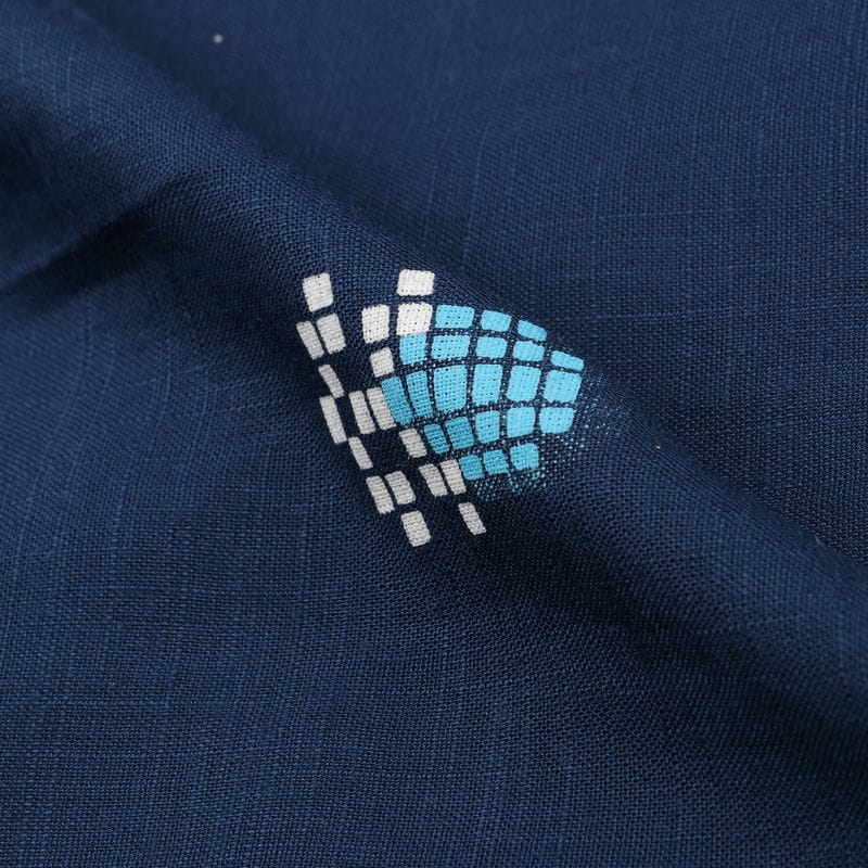 Dark Blue And White Floral Pattern Screen Print Rayon Fabric